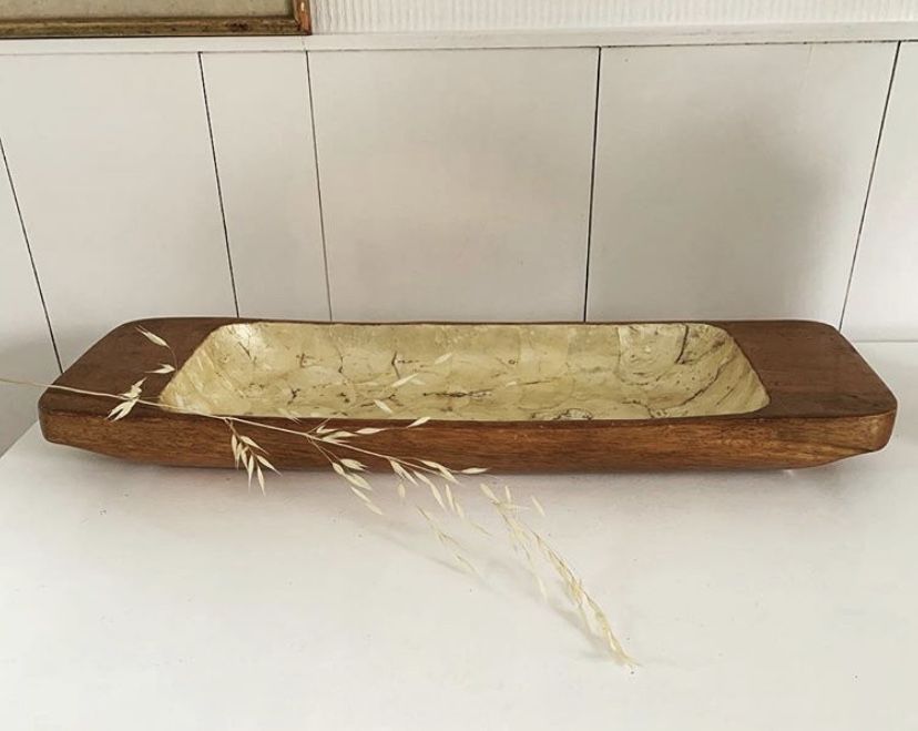 Superbe plateau de service en bois et nacre d une longueur de 48cm, déco et écolo!!