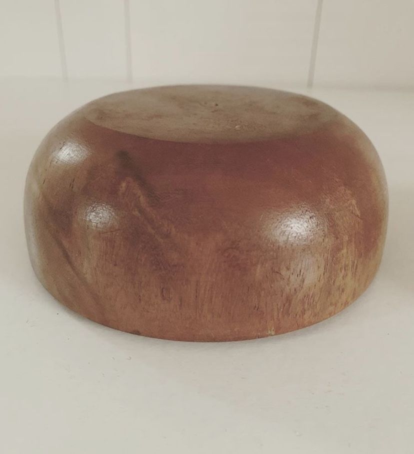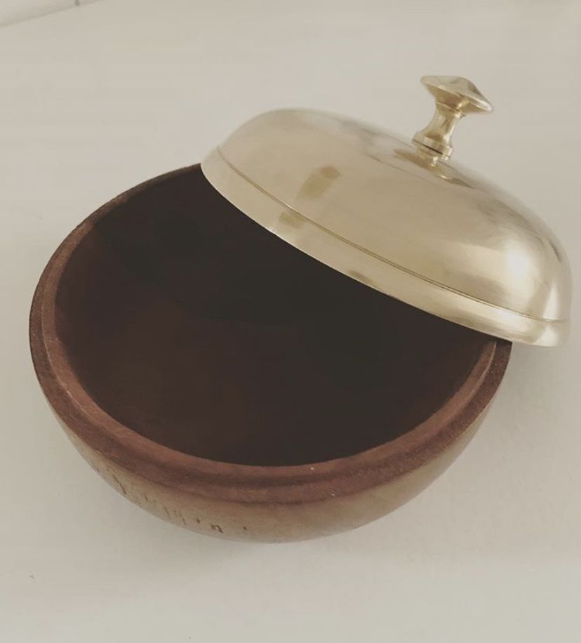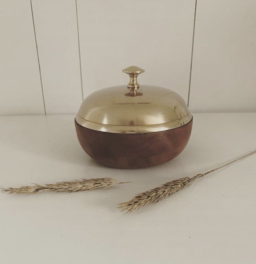 Jolie boîte des années 1970, en laiton et bois, d un diamètre de 12cm.