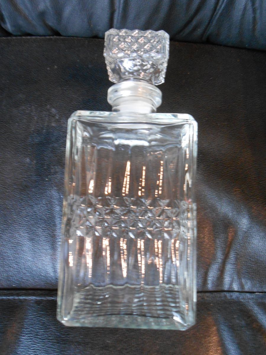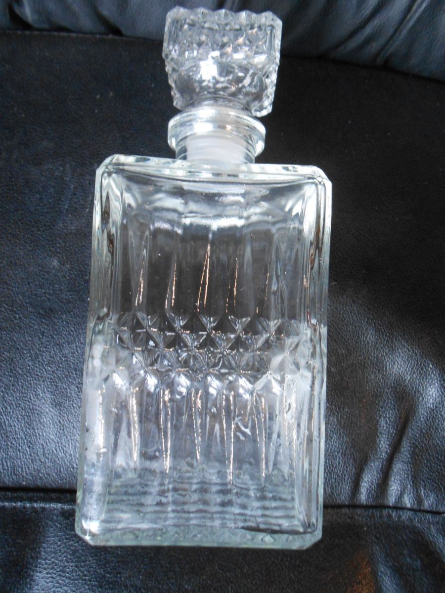 Carafe à whisky vintage , bouchon et carafe en verre, motifs biseautés