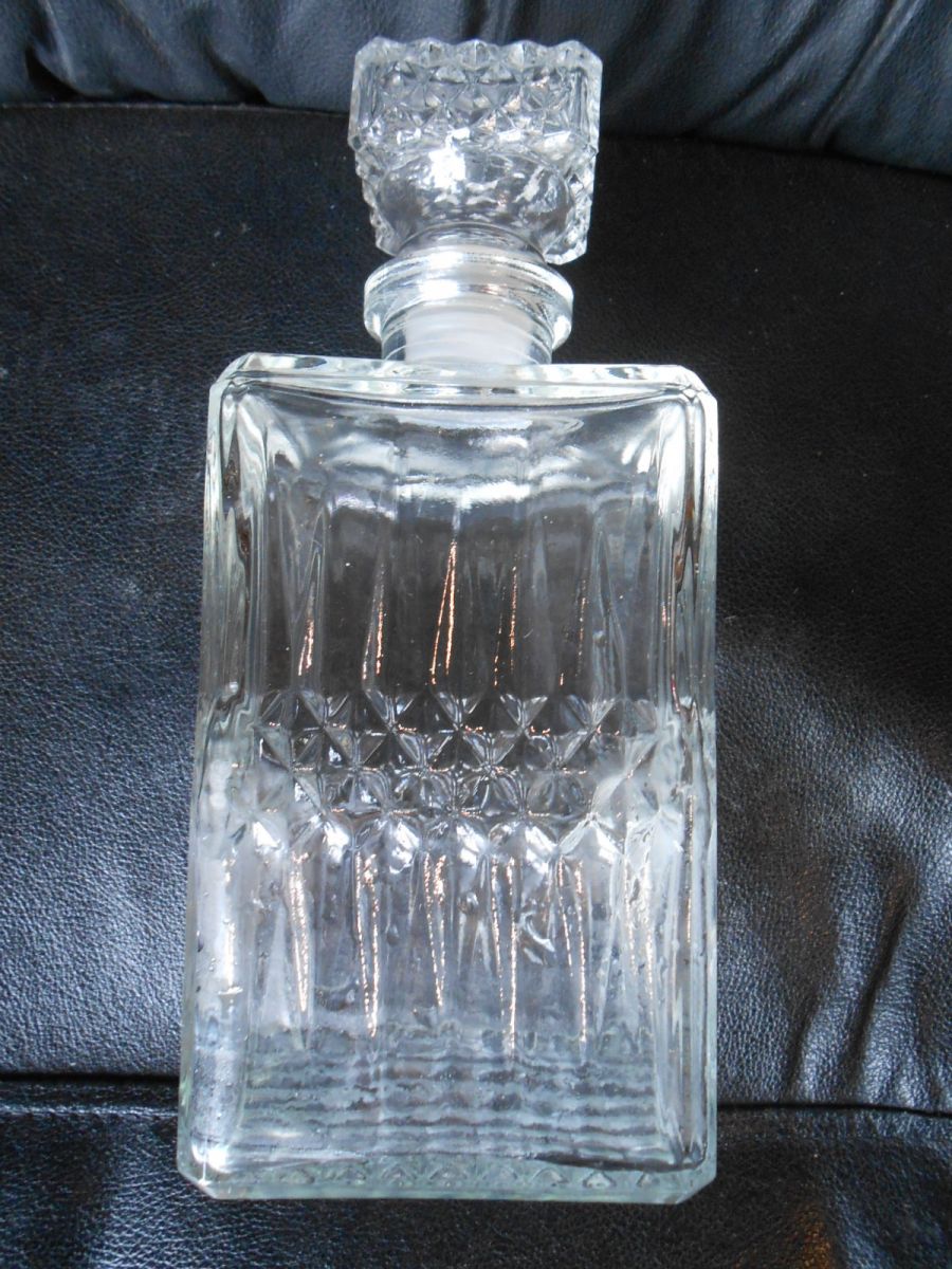 Carafe à whisky vintage , bouchon et carafe en verre, motifs biseautés