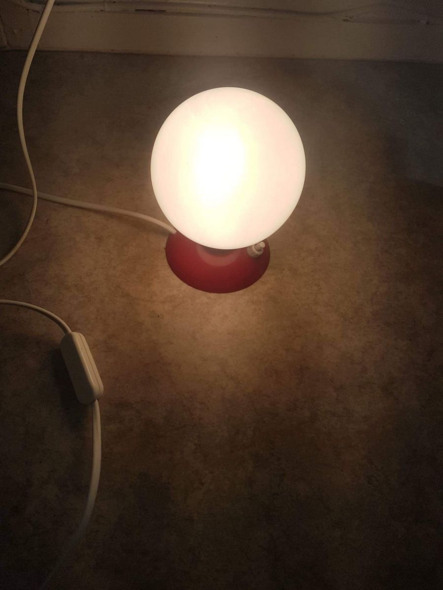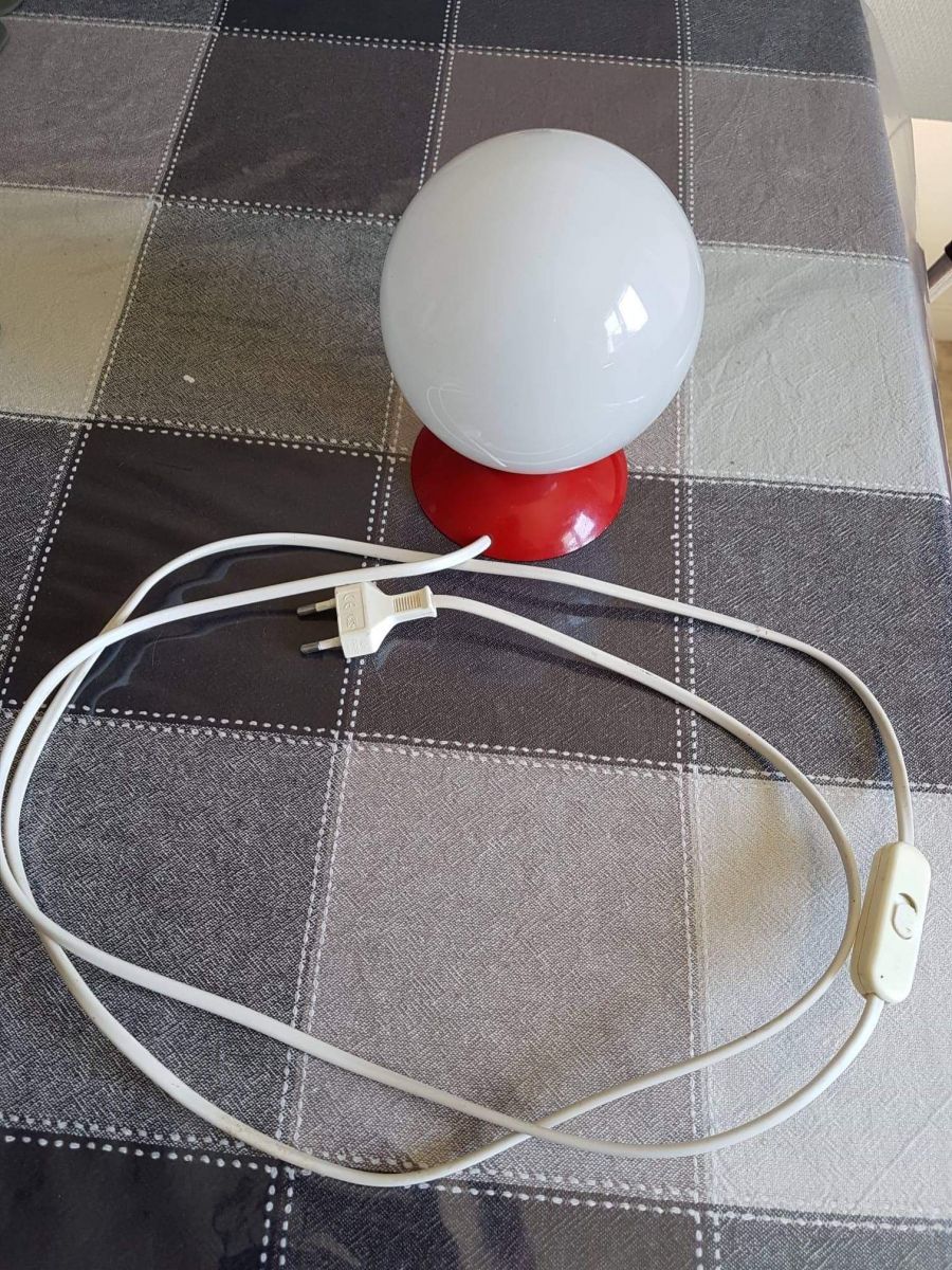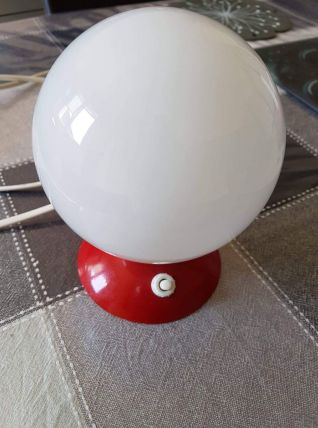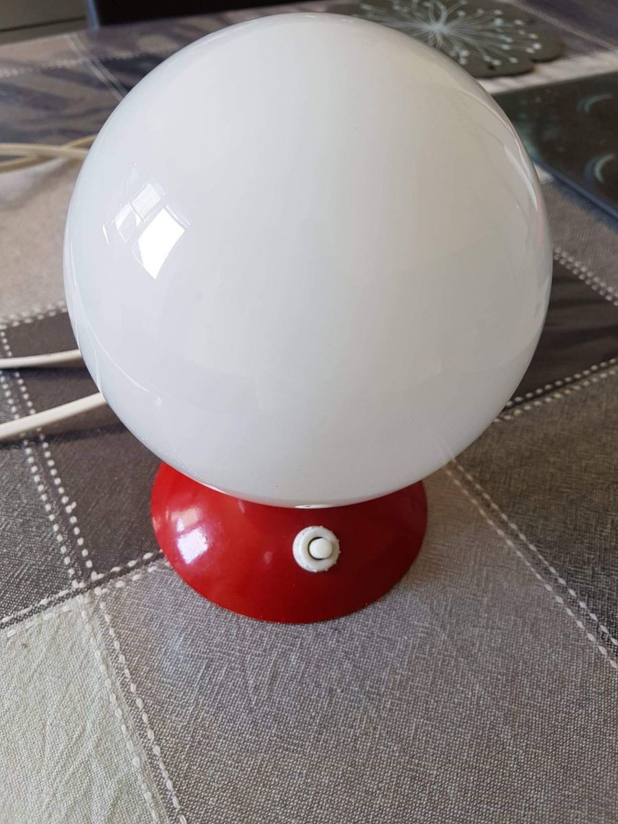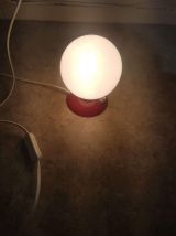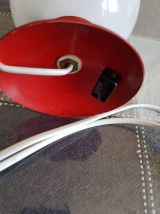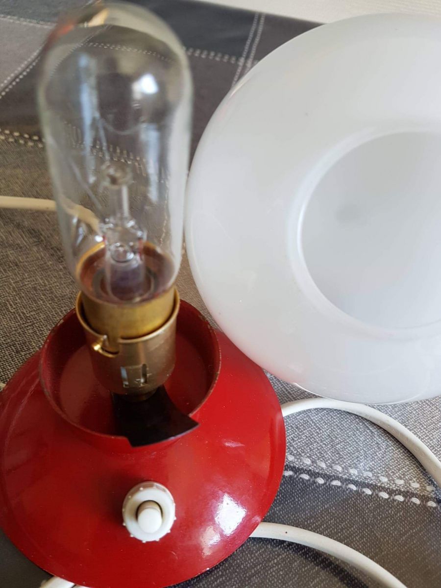 lampe à poser vintage rouge avec opaline blanche ampoule à baïonnette. État : Occasion
