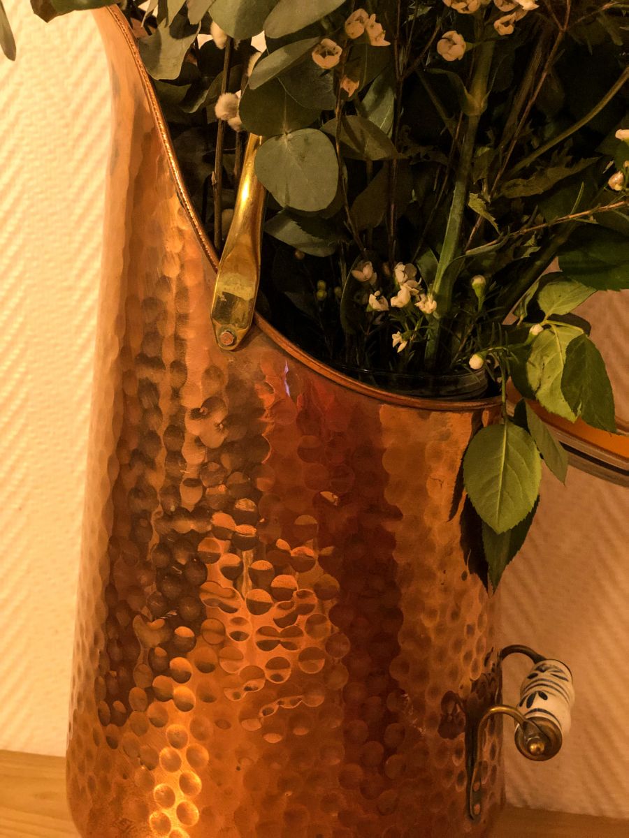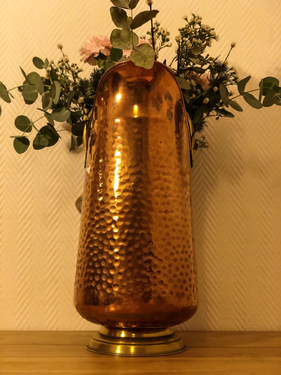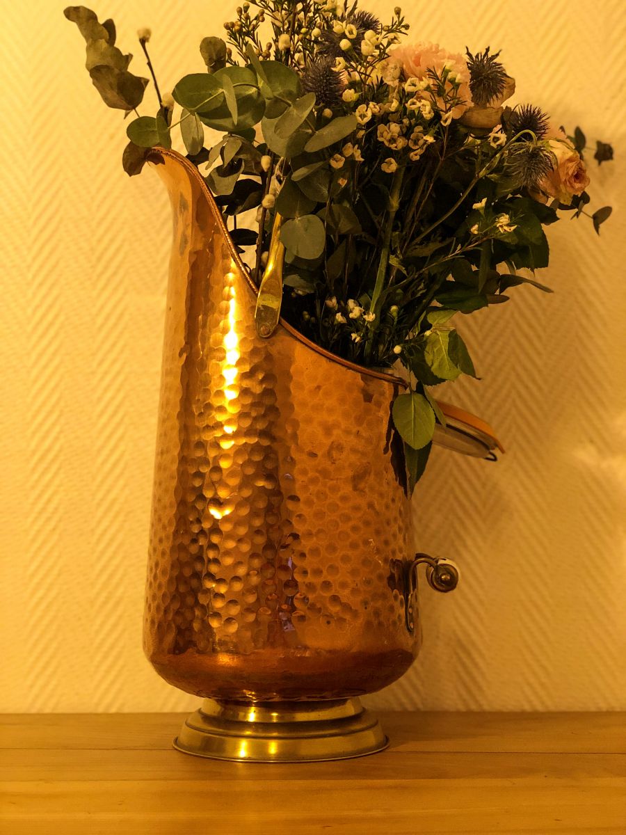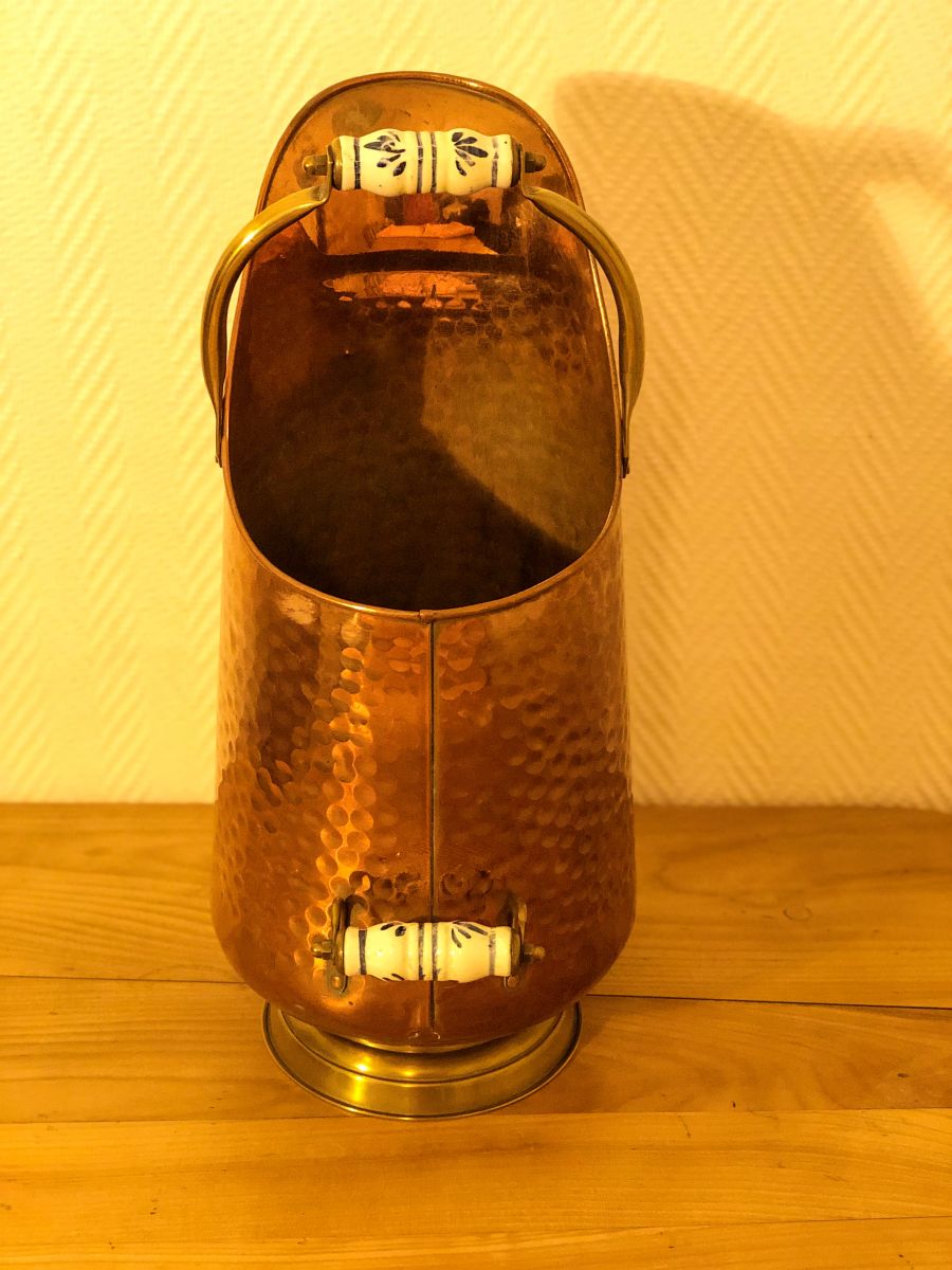 Pot à charbon en cuivre & poignées céramique