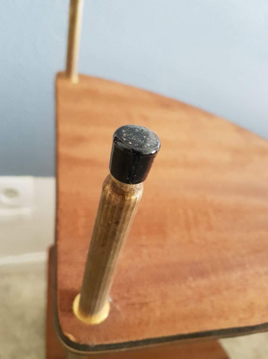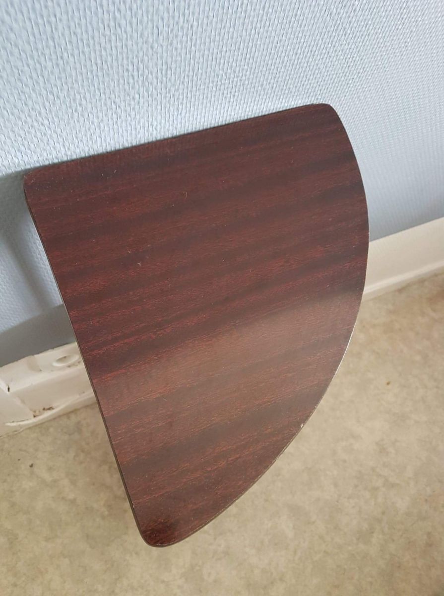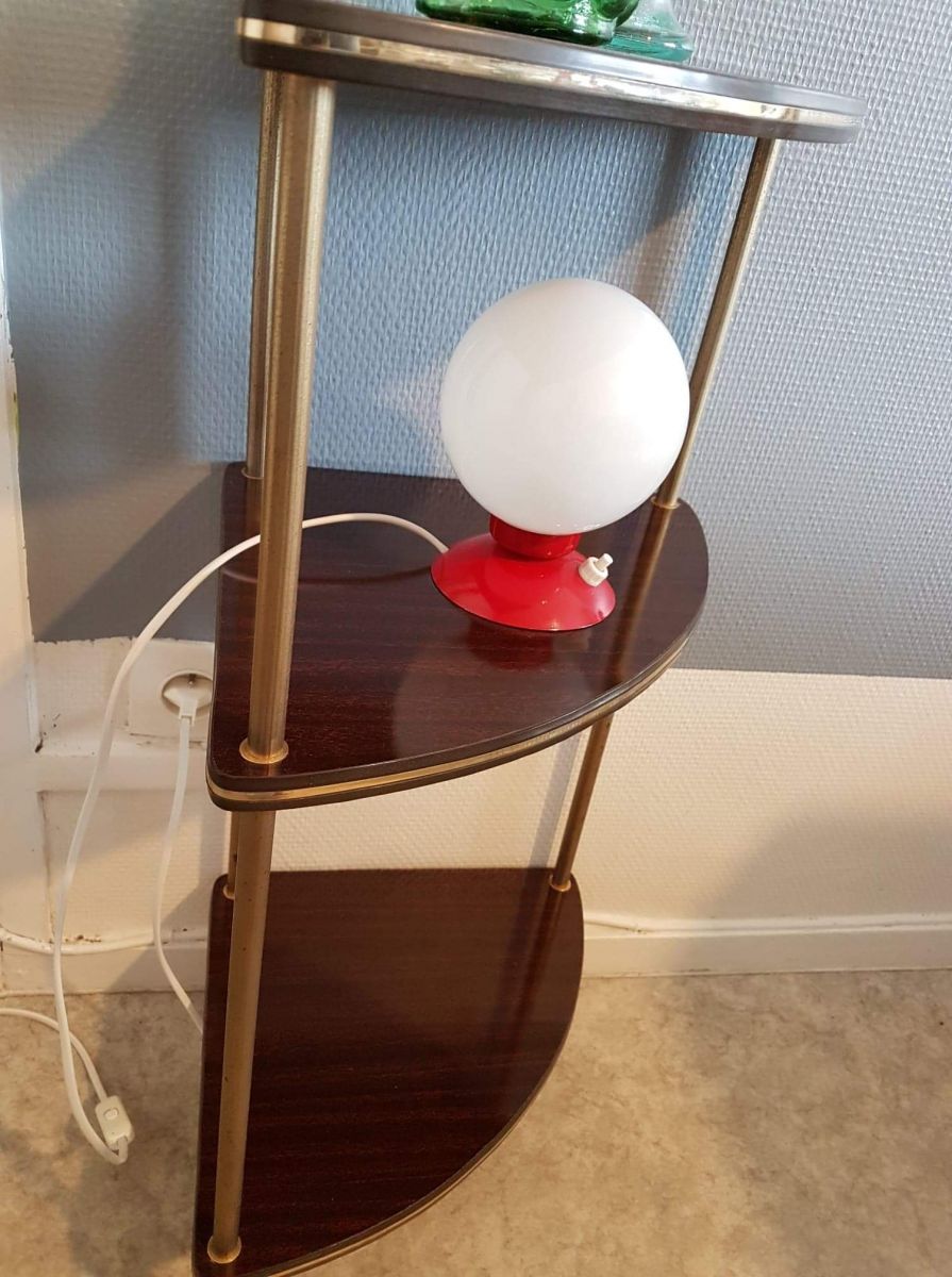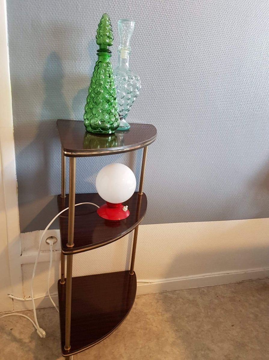 étagère d'angle en formica vintage et structure en métal doré. État : Occasion