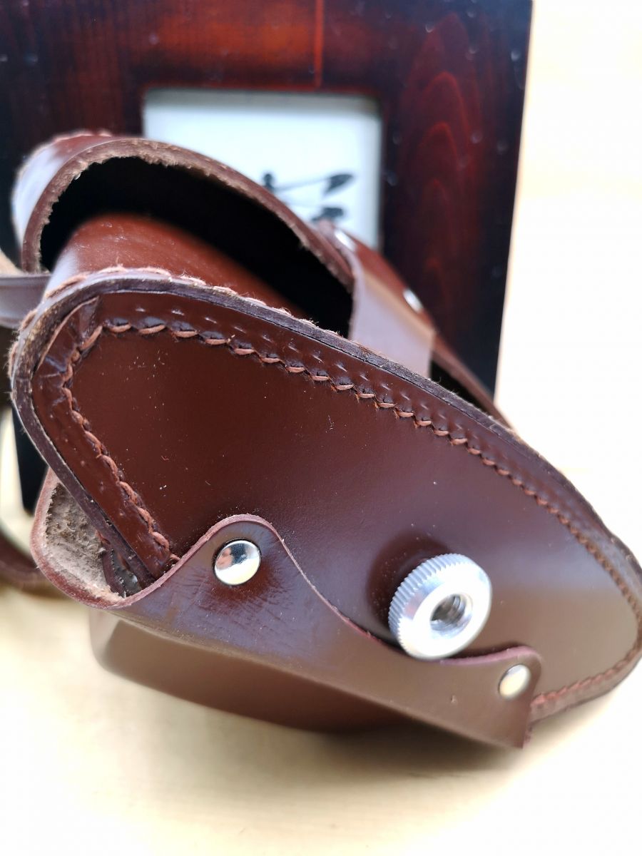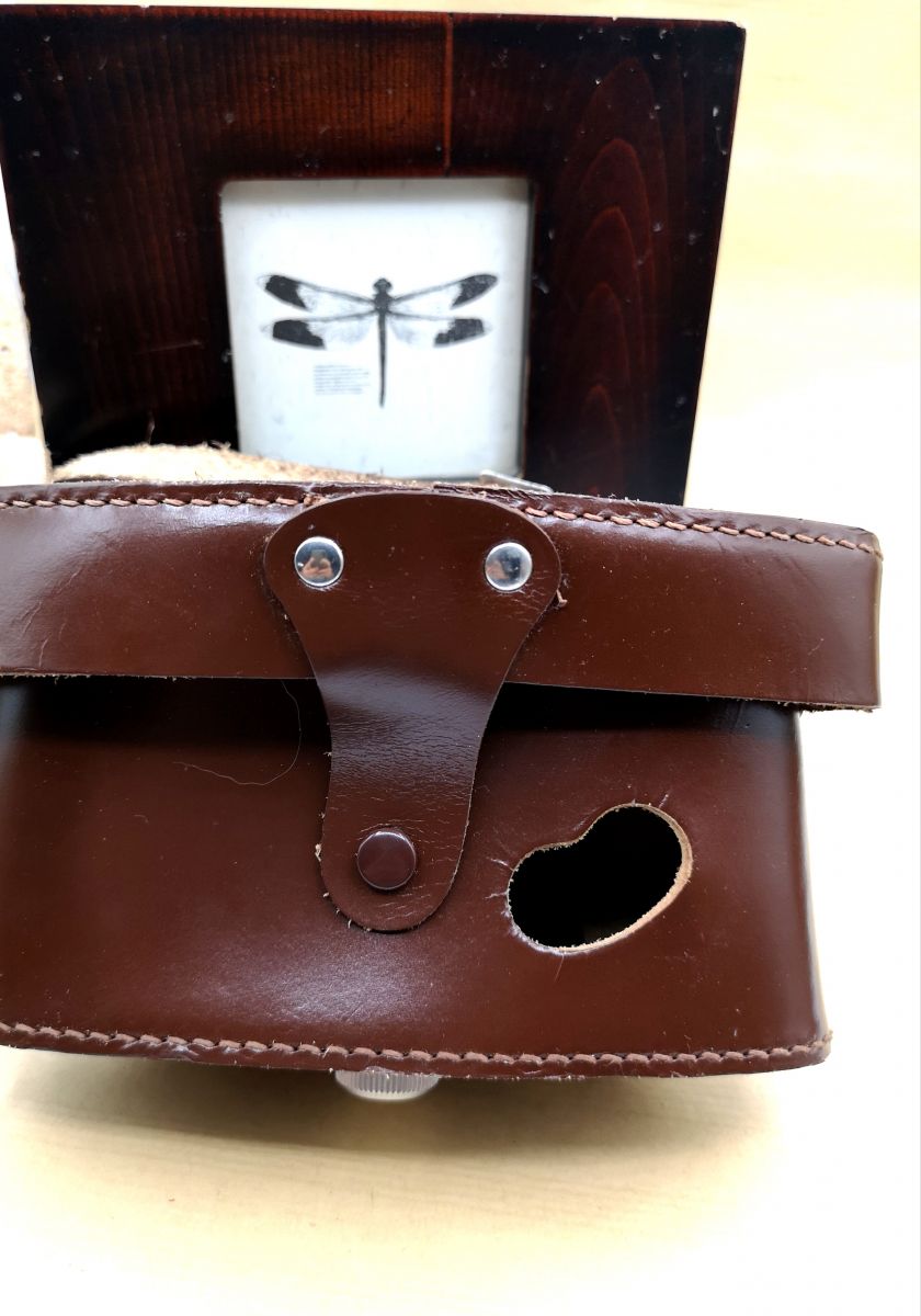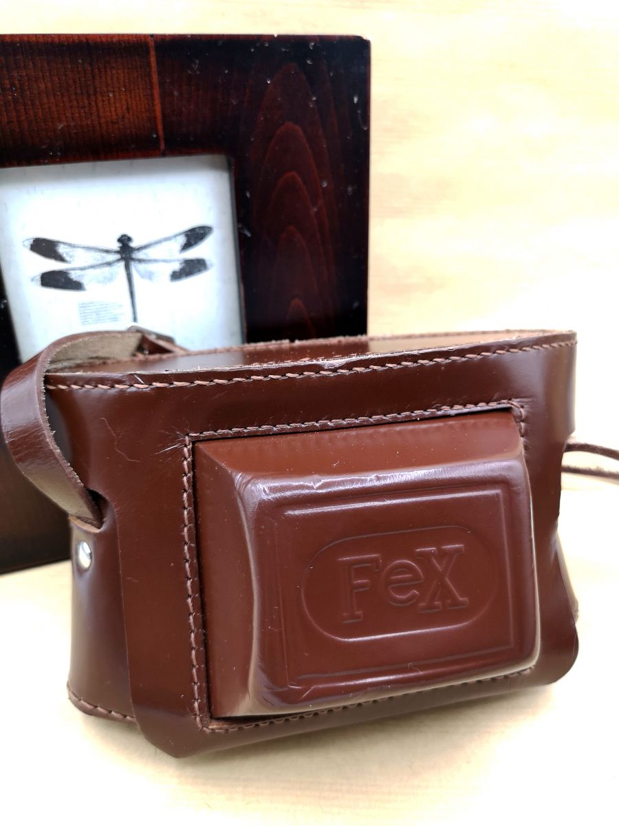 Etui en cuir marron de la marque FEX, avec sangle, produit pratiquement neuf, pas de traces d'usure.