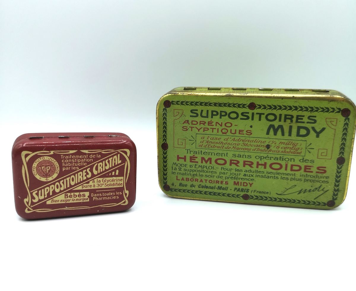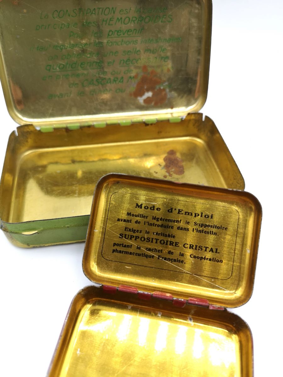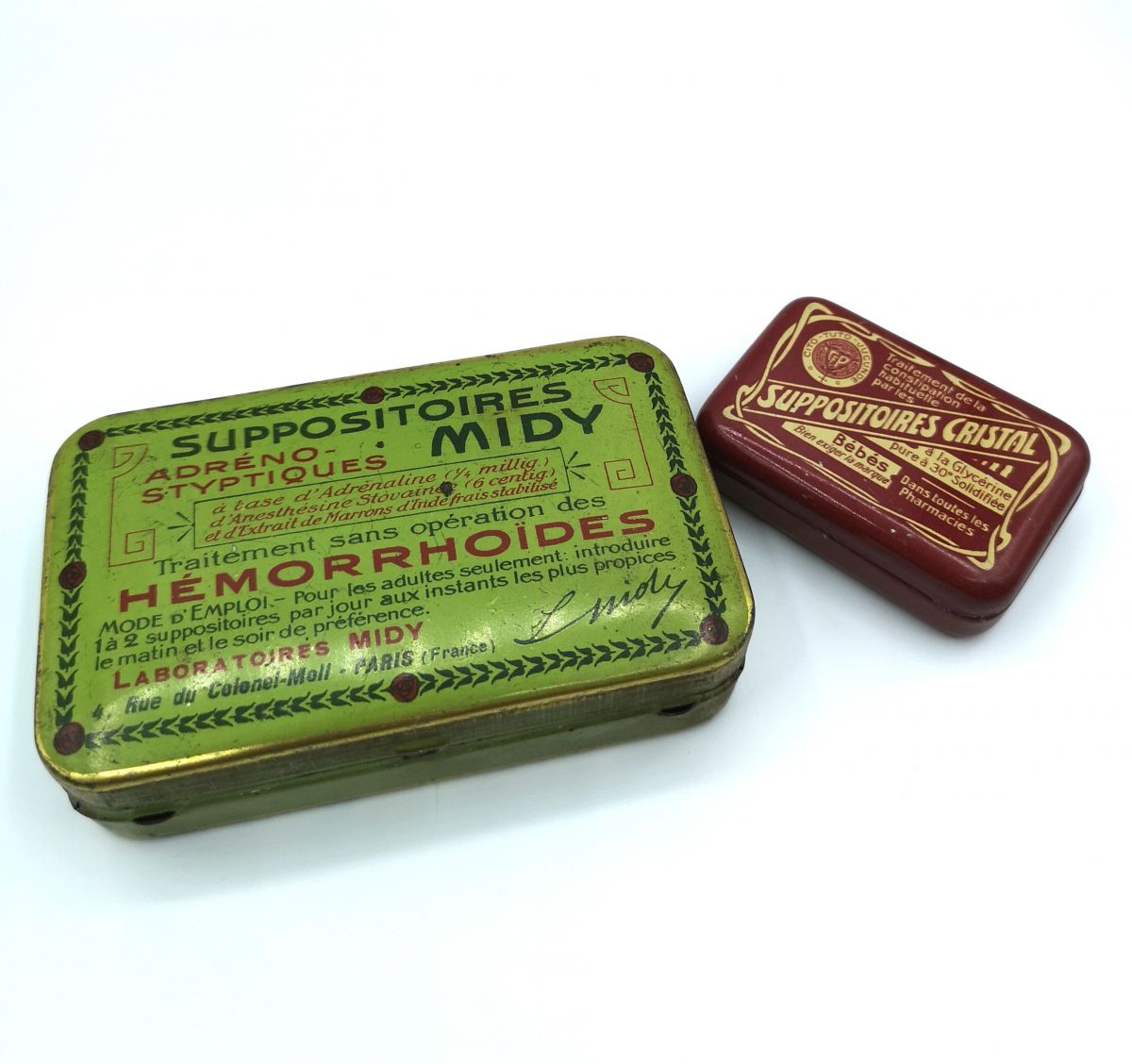 Deux boîtes en métal pharmaceutique (vides) années 1950/1960 fabriquées en France
