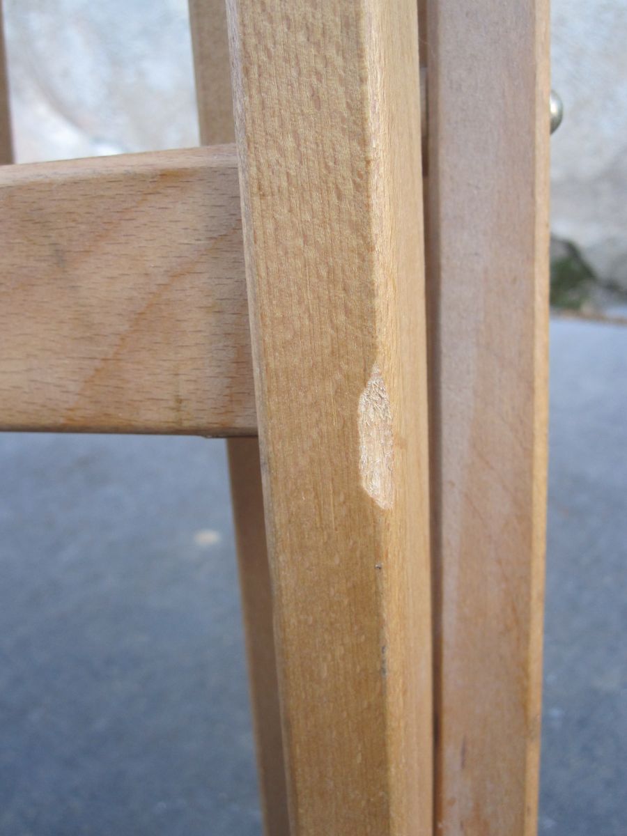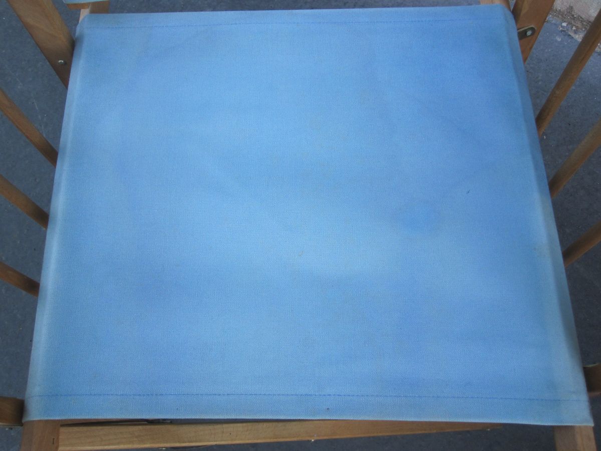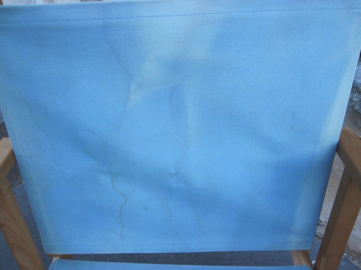 A noté quelque tache sur la toile. Hauteur assise 42 cm, diamètre assise 47 sur 40 cm. Se plie et se range facilement.