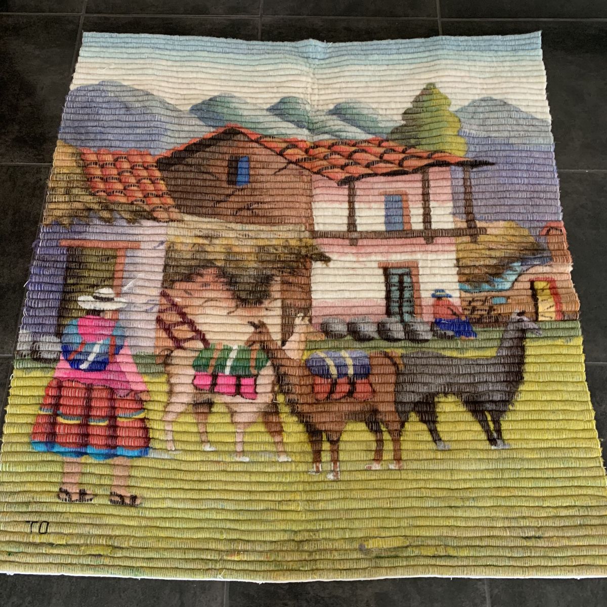 Tapis Péruvien en bel état, mesurant 117cm sur 107cm.