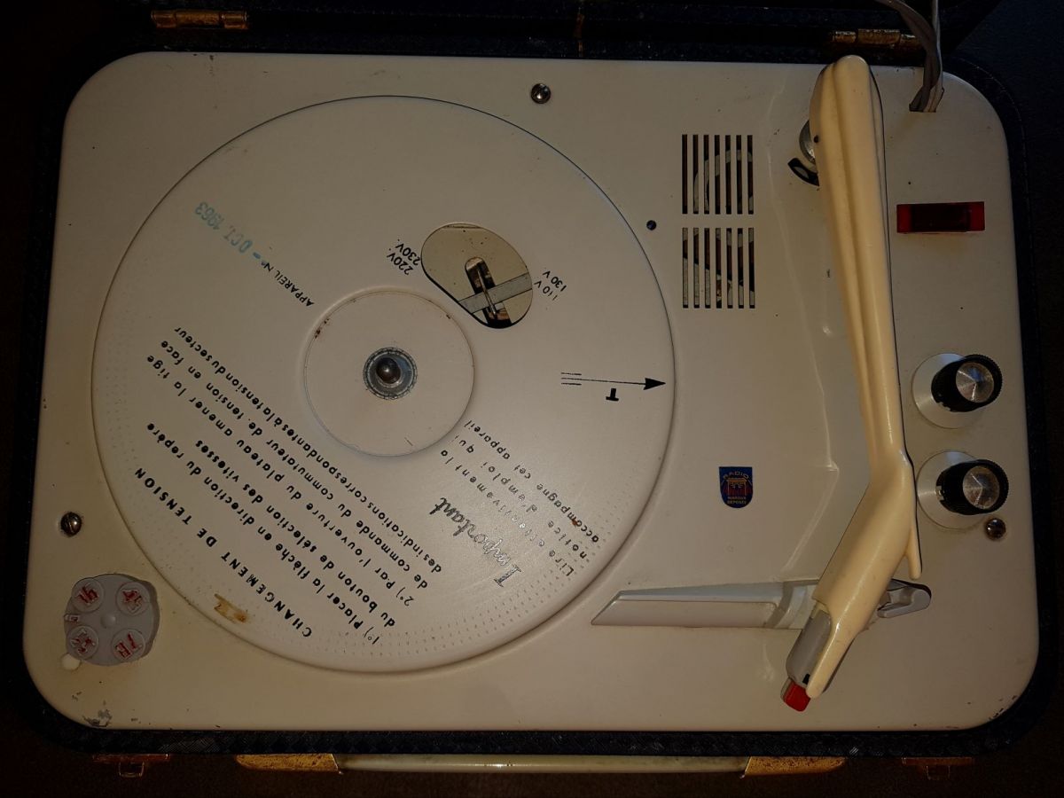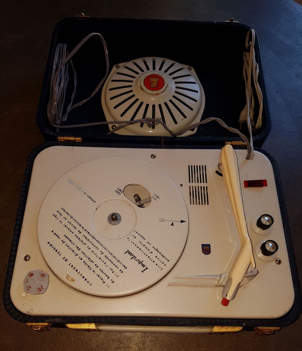 Tourne disques Audax des année 1963; fonctionne sur secteur 16, 33, 45 et 78 tours.
