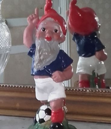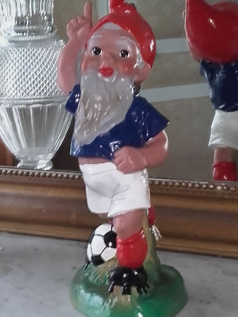 Nain en plastique dur très vintage. Même les nains se mettent au foot!!!! Très décoratif pour celles et ceux qui aiment le foot.... Date de la victoire de l'équipe de France en 1998.