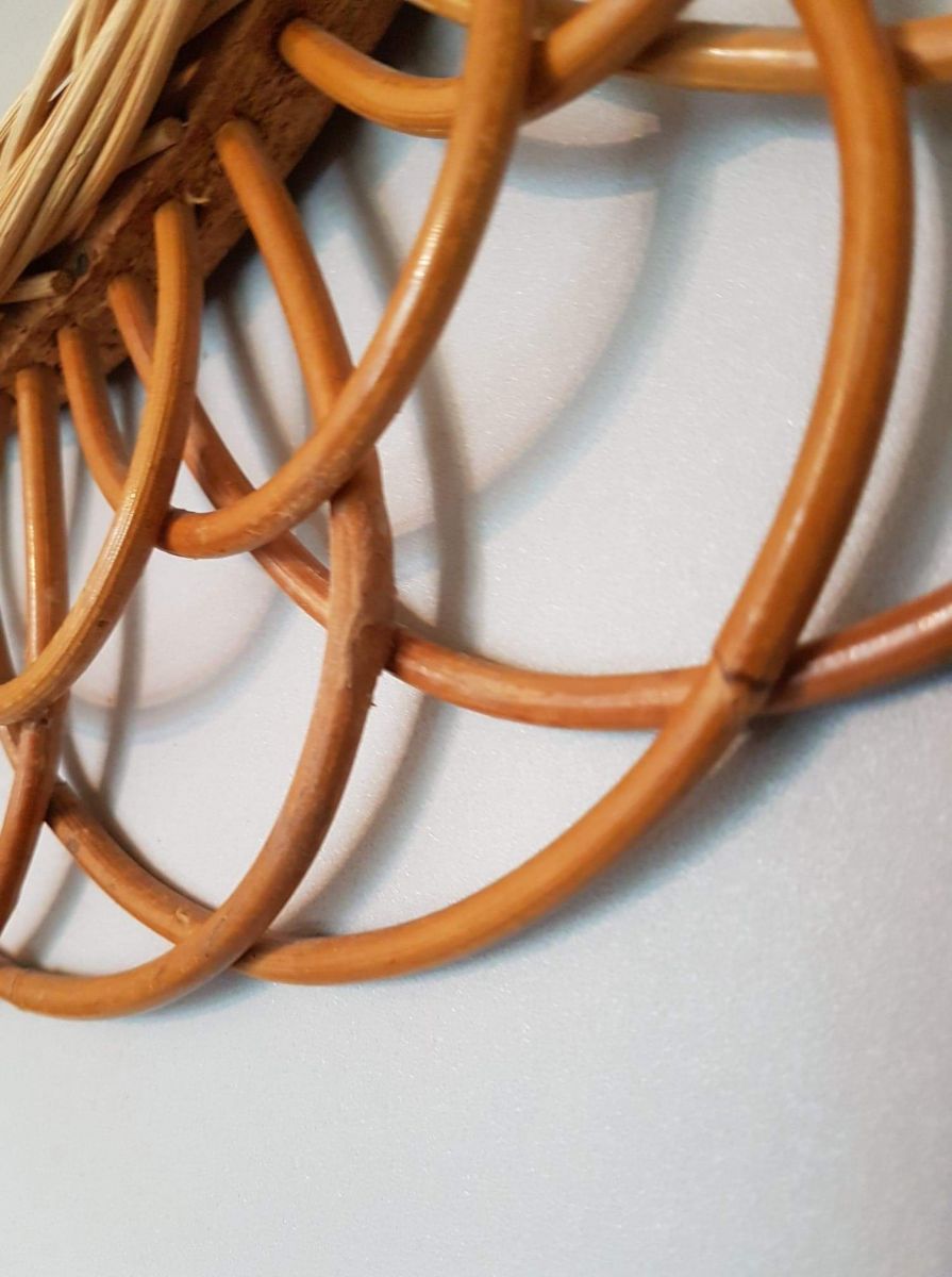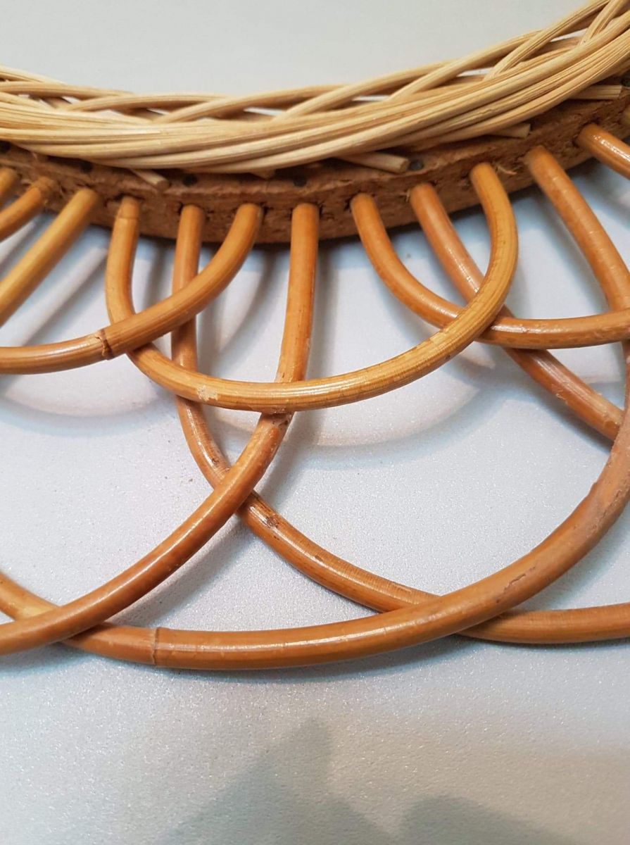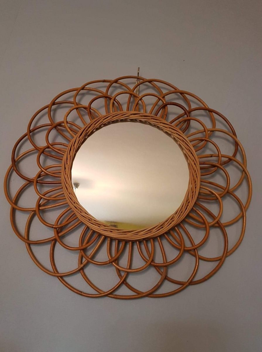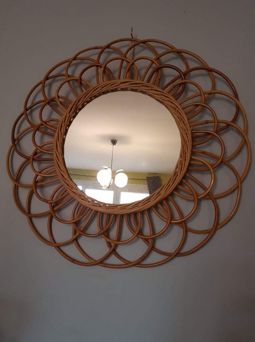 Miroir Soleil Rotin Vintage forme de fleur des années 60.