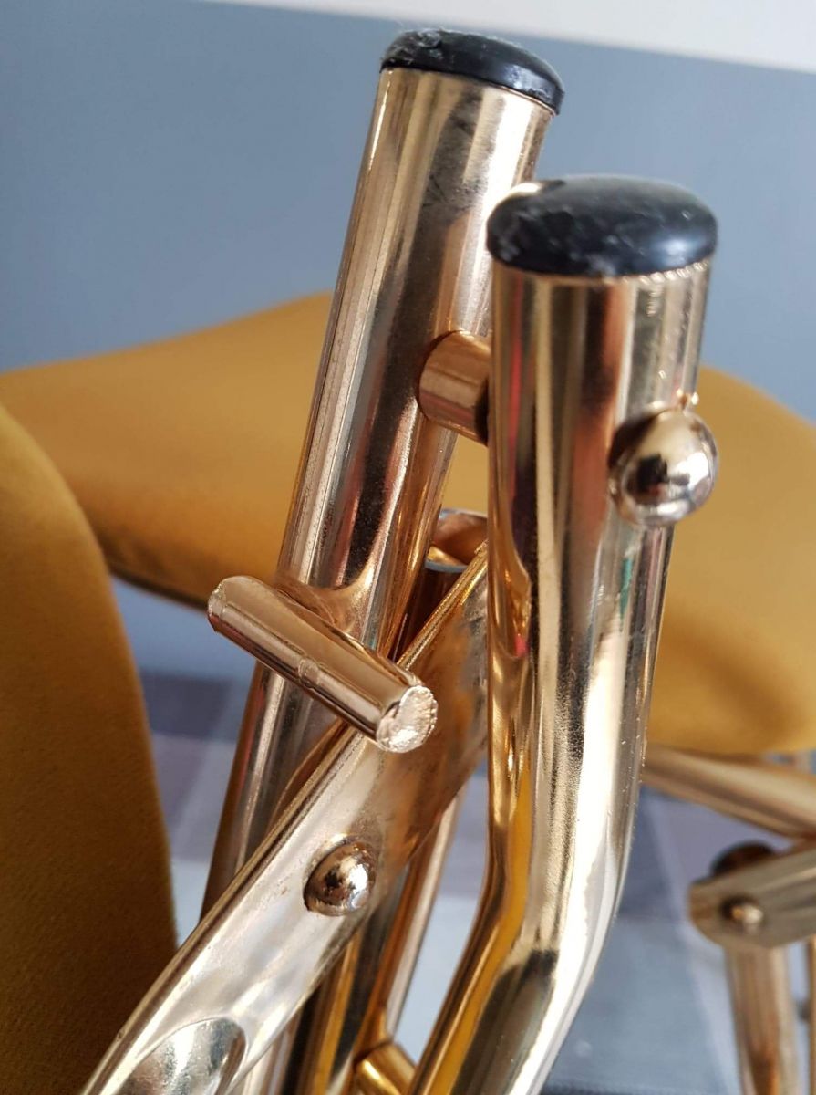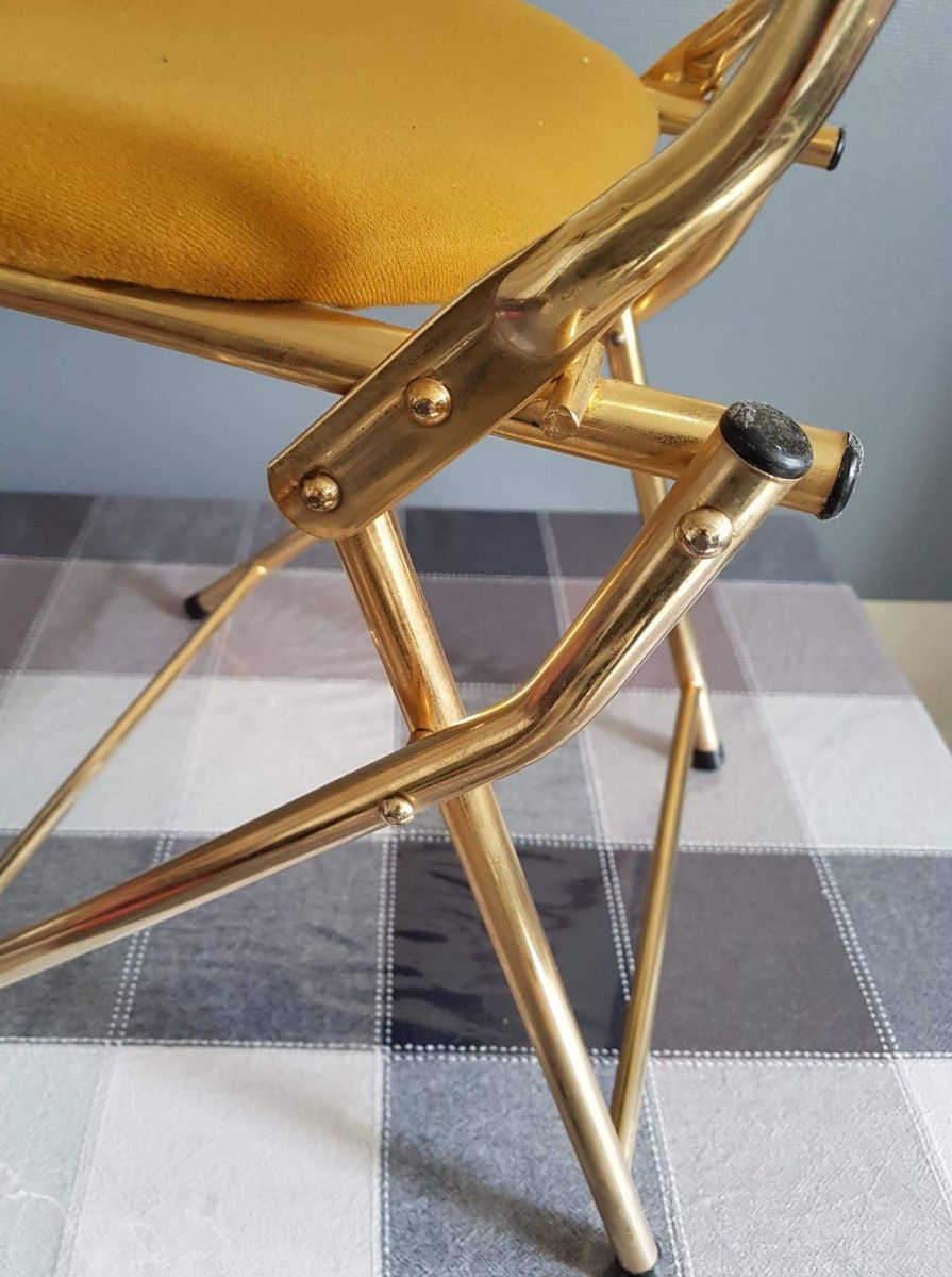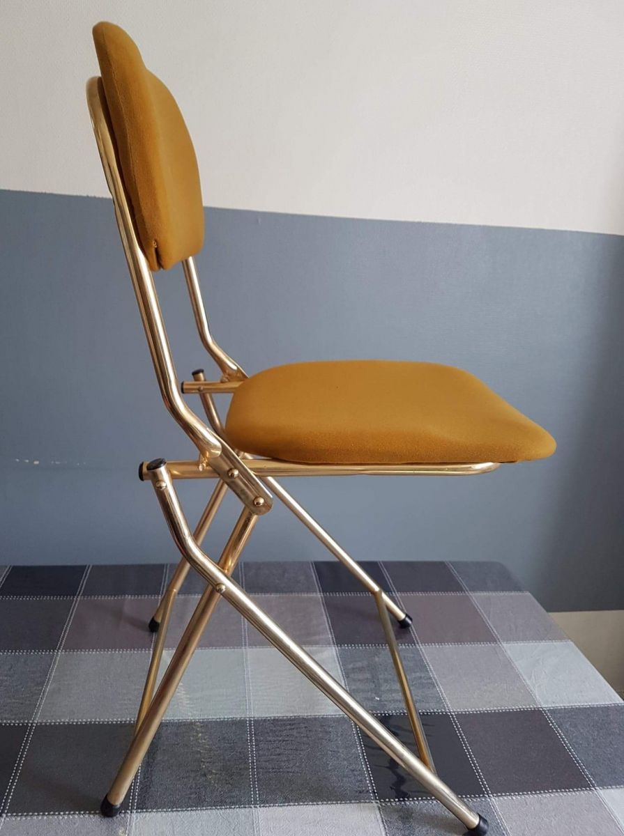 2 chaises vintage Eyrel couleur moutarde avec système de pliage breveté des années 70