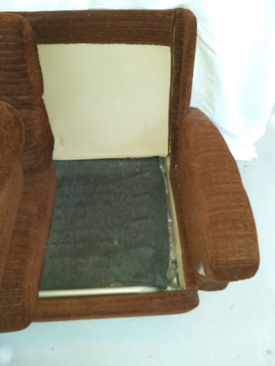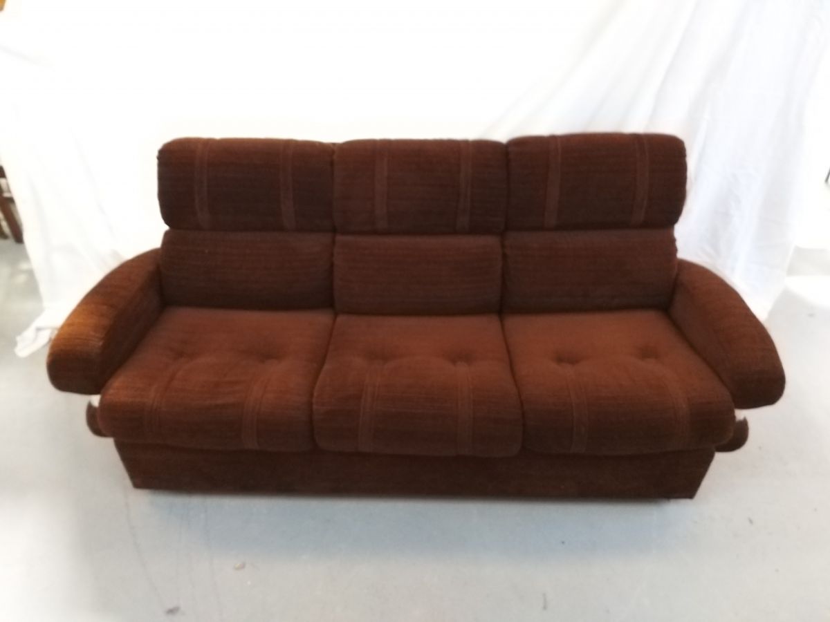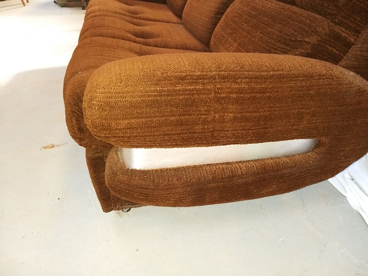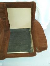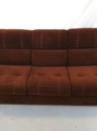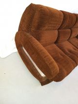 Canapé 3 places vintage , années 70 , tissu velour marron a grosse cote , déhoussable , convertible , avec dessous accoudoirs en alu , bon etat , tout est d'origine....