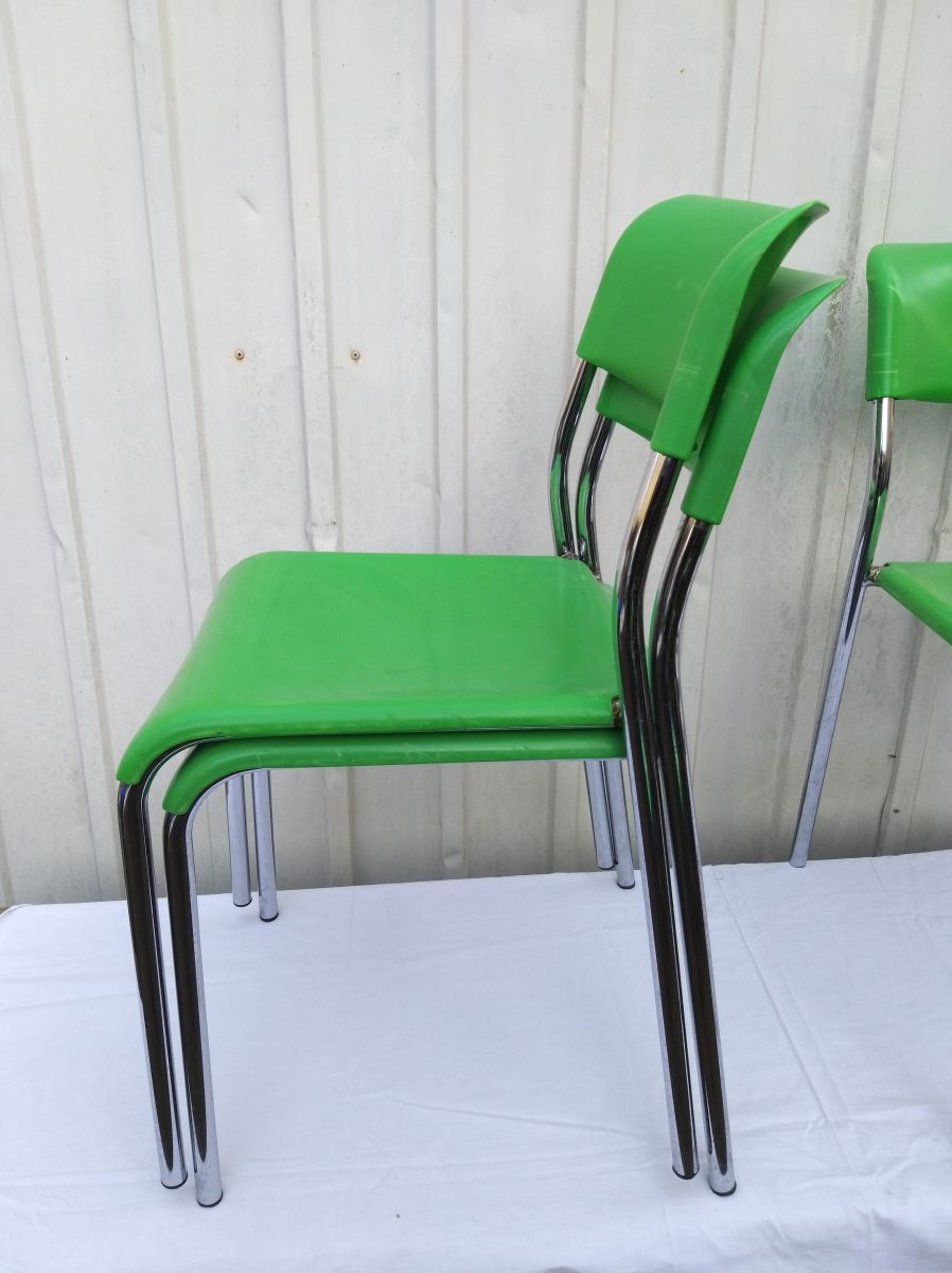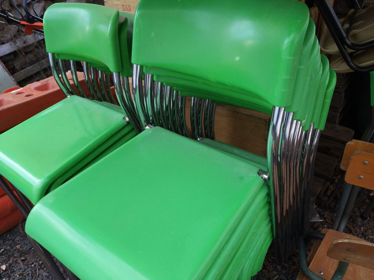 lot de 20 chaises de conference vintage couleur vert pomme ------ tamponner MULLCA S.A Made in France ---- pied chrome ----empilable...