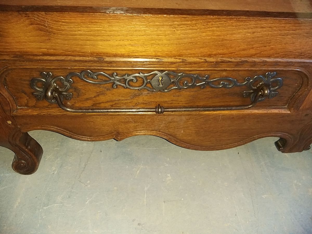 Armoire Lorraine , 2 portes , 2 tiroirs , en chene , époque fin 19 début 20 , entiérement chevillée , tres bon état , ferrures en fer forgé d'origine ,cles d'origine