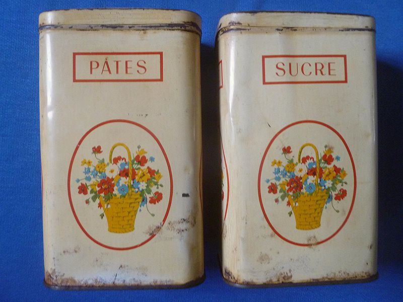 couleur ivoire , dessin panier fleuri sur les 4 faces de chaque boite