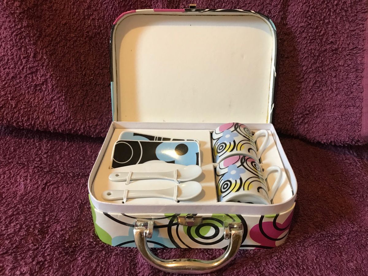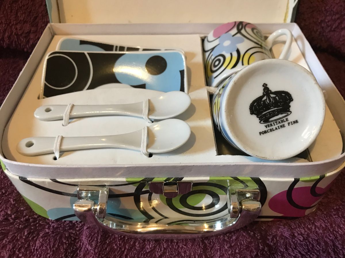 VALISETTE TASSES SOUS TASSES PORCELAINE ANGLAISE ET CUILLERE