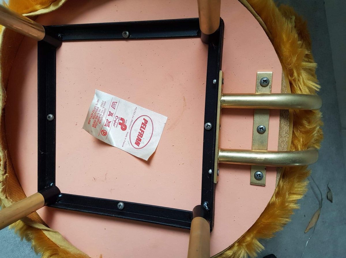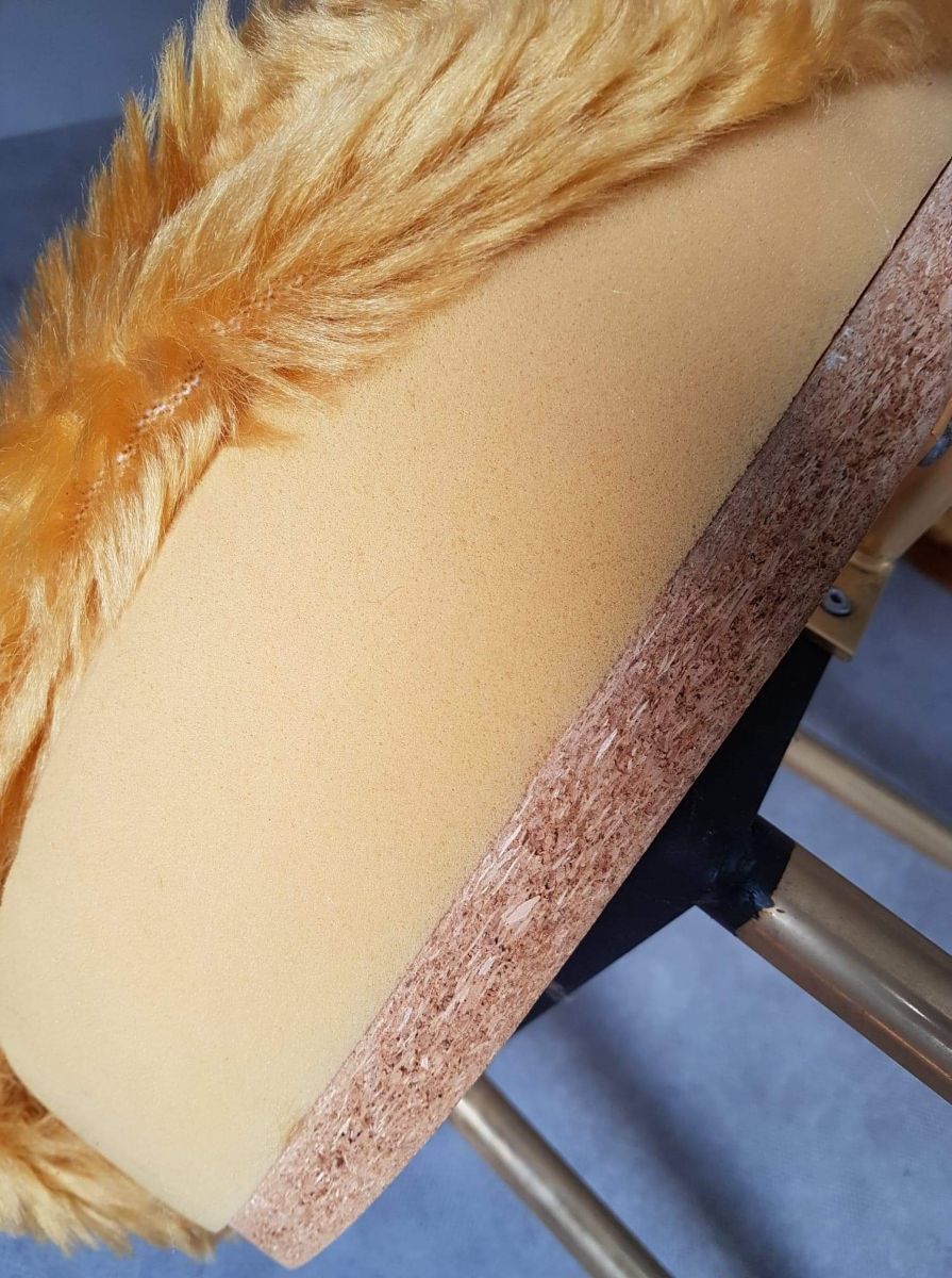 paire de chaises Pelfran en fourrure synthétique couleur moutarde déhoussable des années 70
