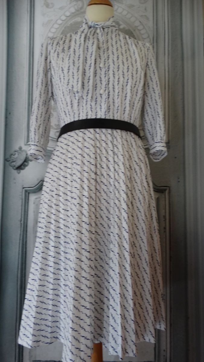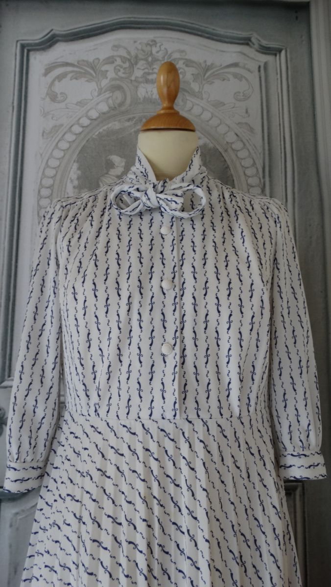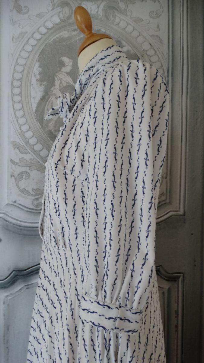 Robe midi été vintage 1970 encolure lavallière