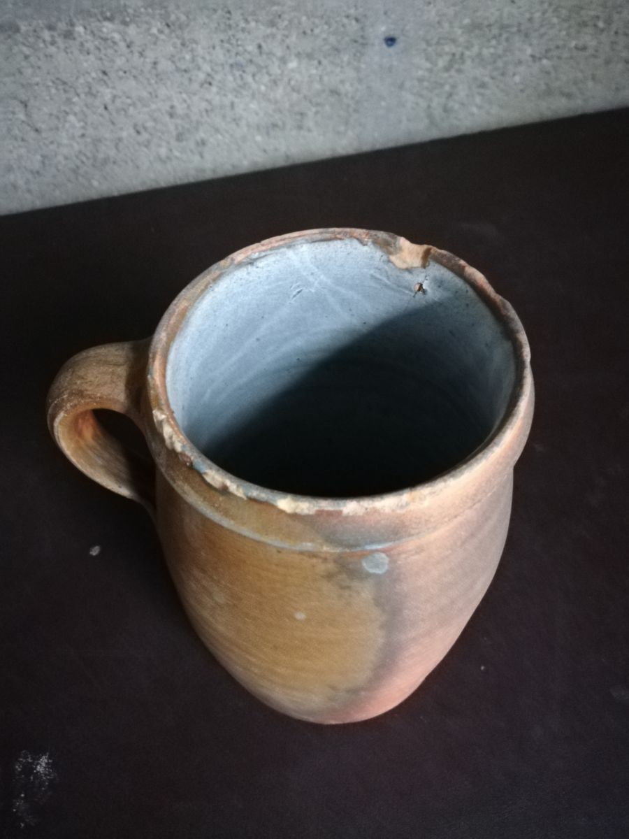 Pot/cruche ancien en terre cuite. Intérieur émaillé gris.