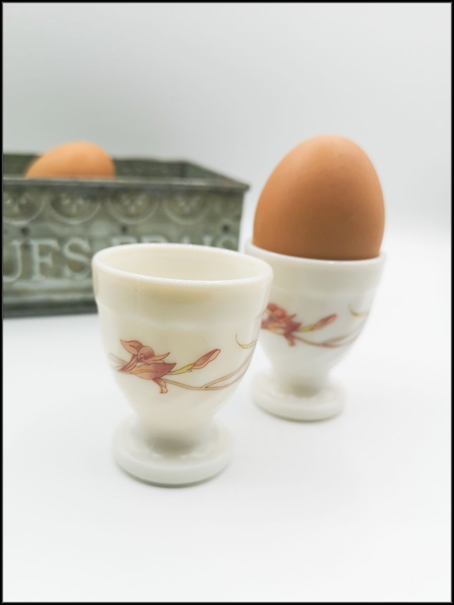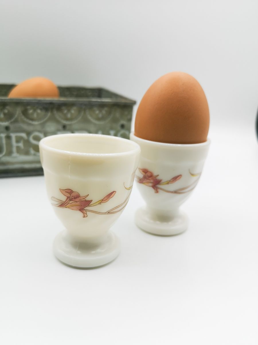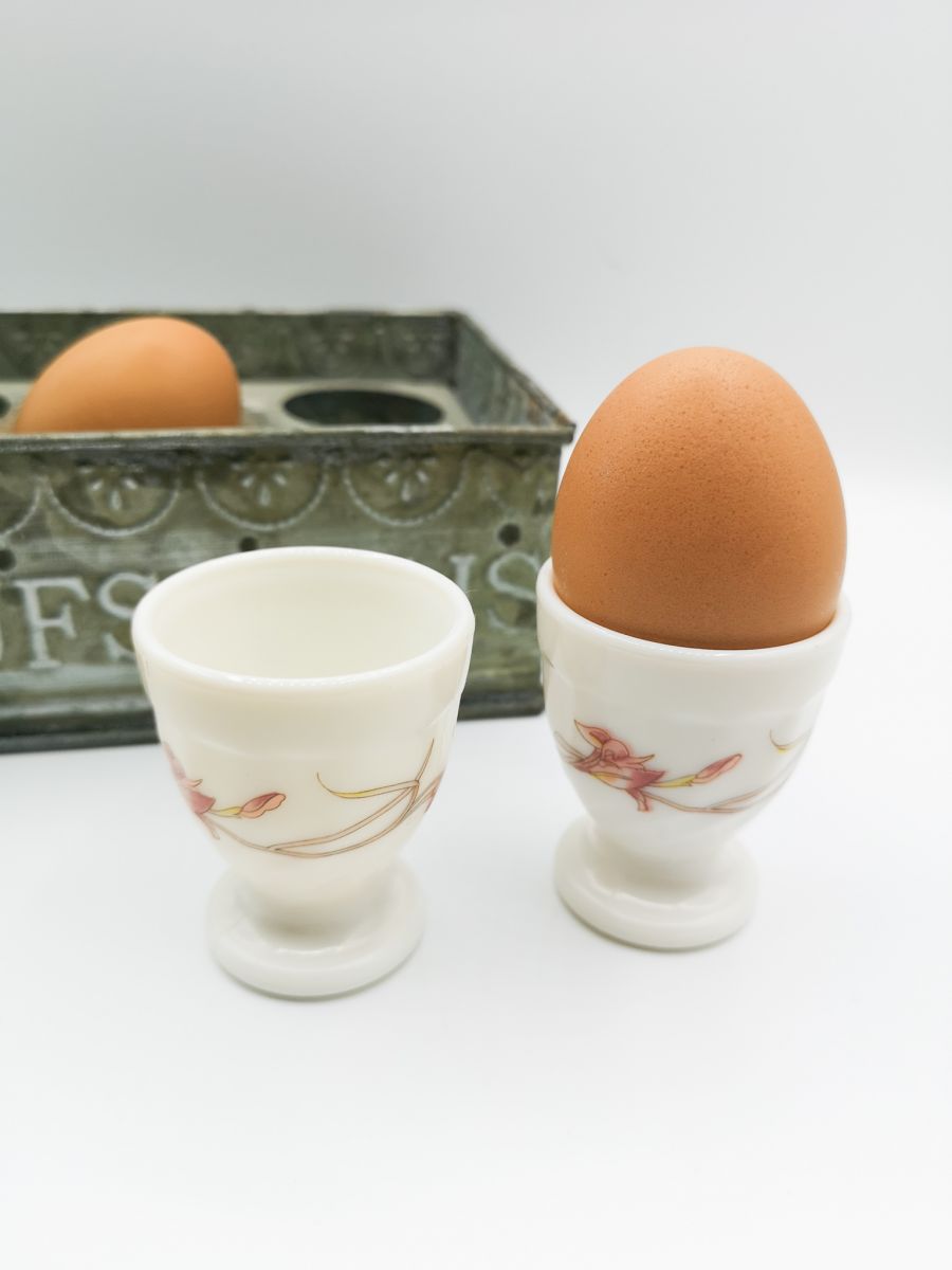 Duo coquetiers vintage arcopal, made in france, dessin fleurs "art deco"