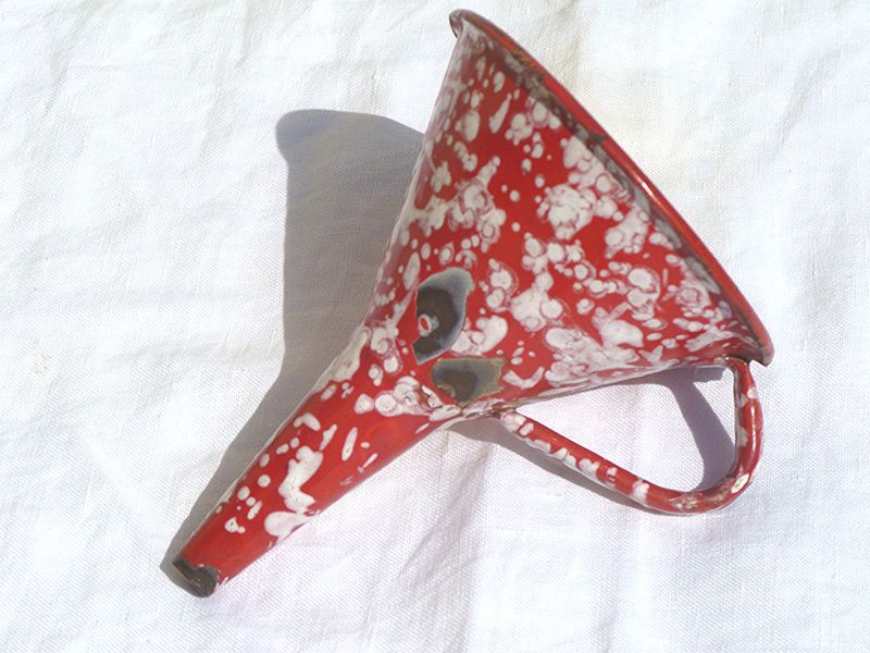 entonnoir ancien en acier émaillé, vintage
