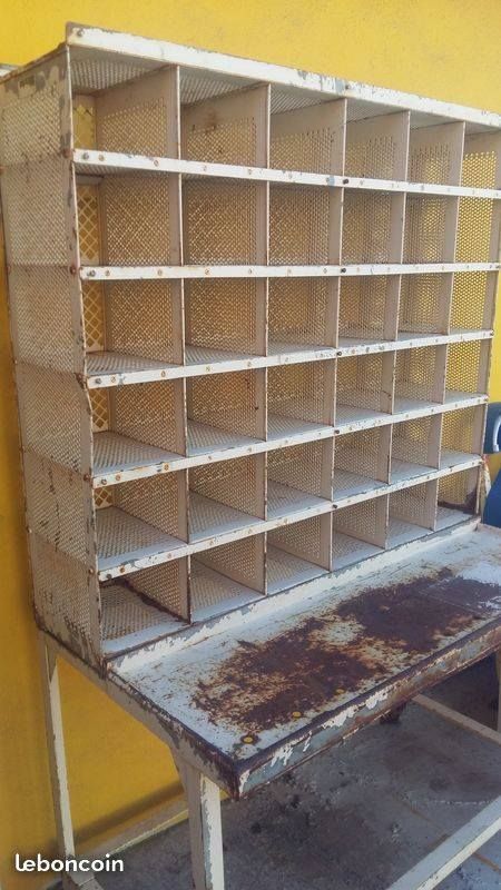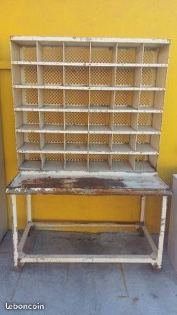 RARE trieur de la poste, en métal, avec son établi, soit a décaper pour aspect métal, soit a peindre en couleur, daté 1968