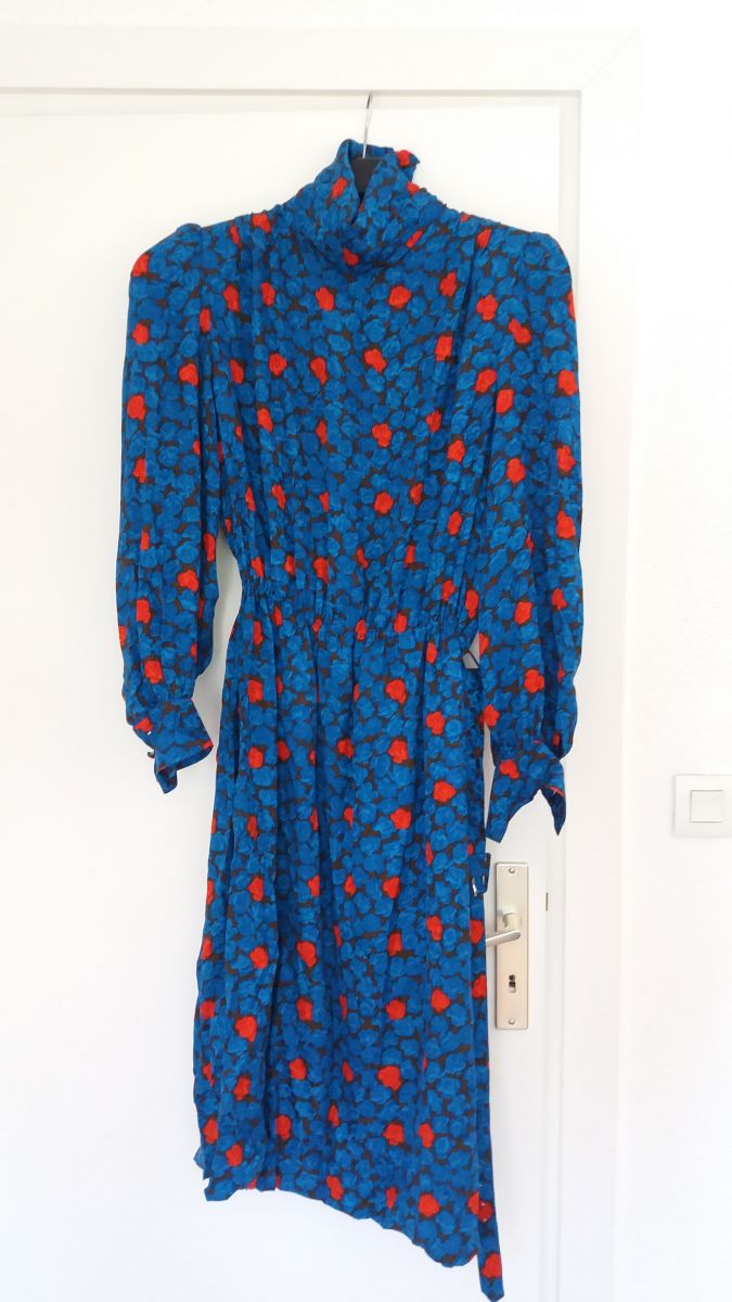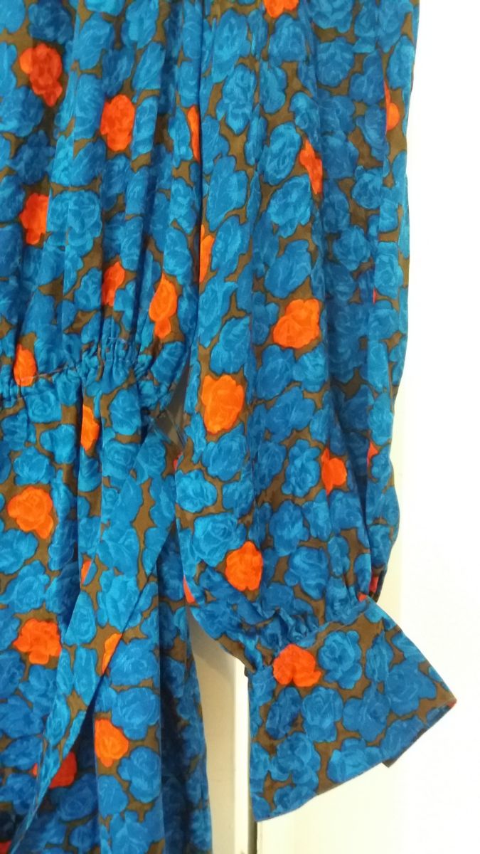 Robe en soie vintage faite par une grande couturière parisienne. Tous est dans les détails même les boutons ont été recouverts du tissu de la robe. Elle est resserrée à la taille, a des épaulettes qu'on peut enlever et d'une ceinture. Elle est doublée et a été mise une fois. Je répondrai avec plaisir à vos questions.