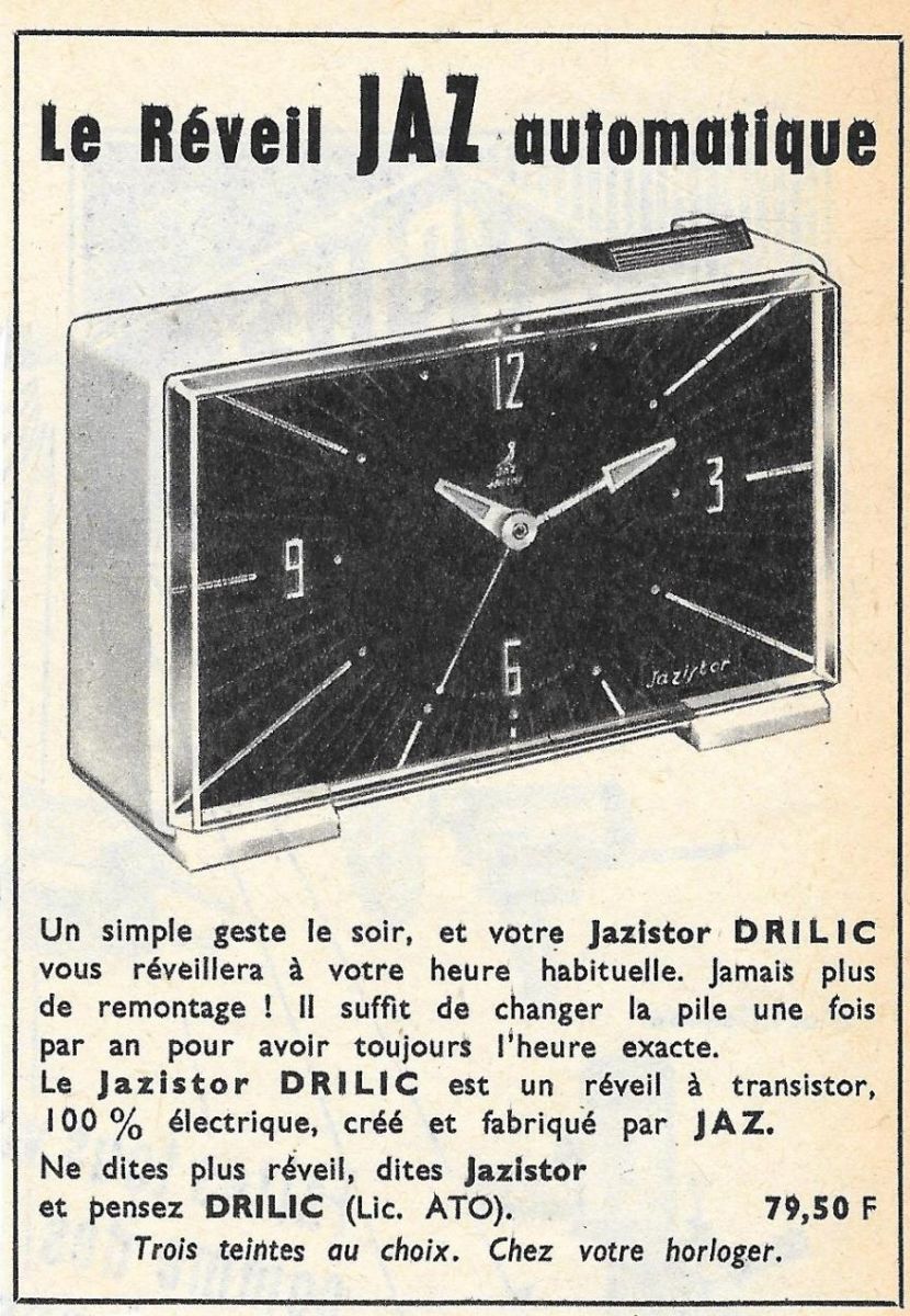 Le DRILIC est le premier réveil à transistor 100% électrique , une Première Mondiale que Jaz affiche fièrement sur sa boîte , avec la mention création de PH. CHARBONNEAUX