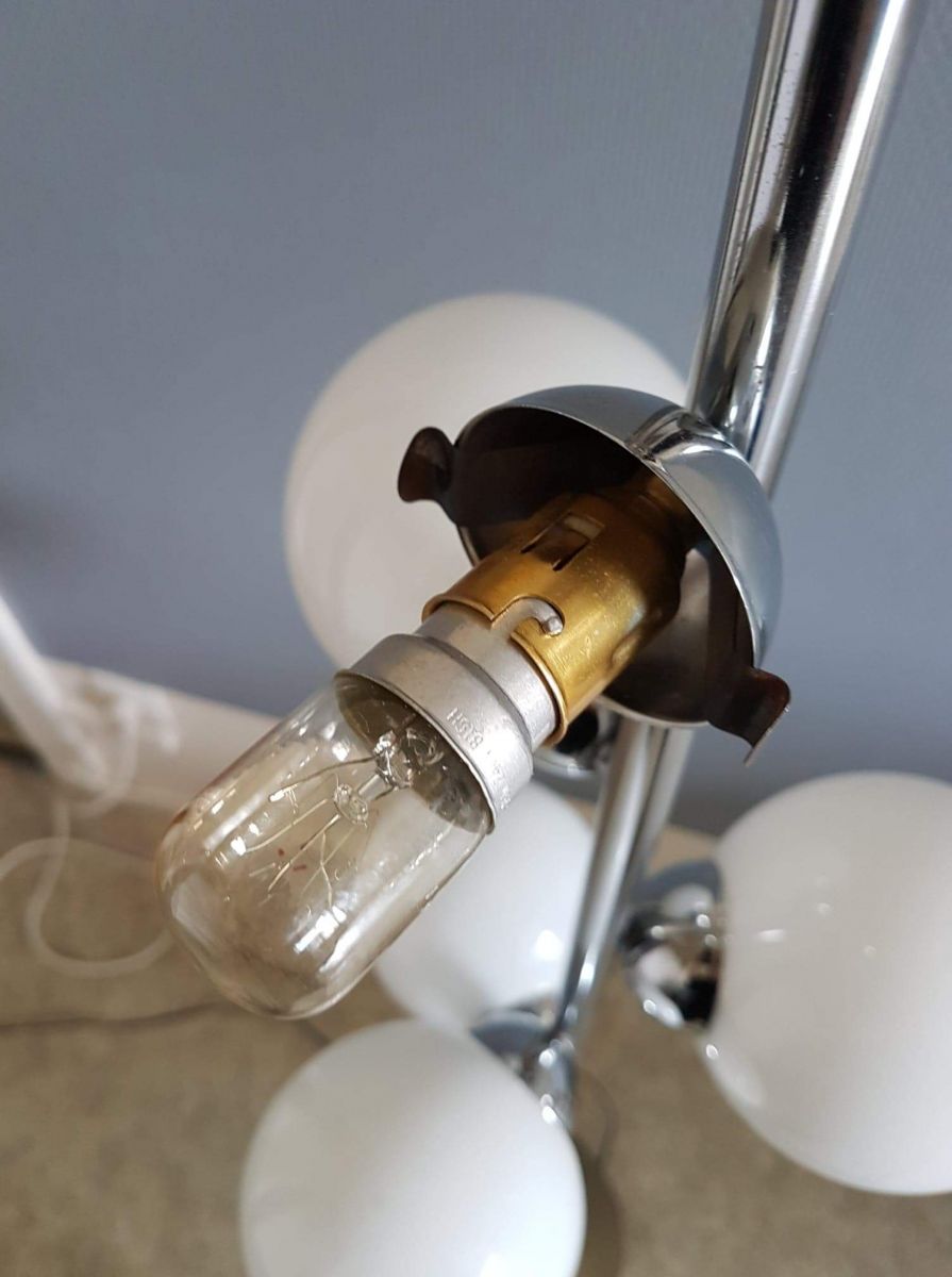 lampadaire 6 opalines pied métal chromé année 1974.