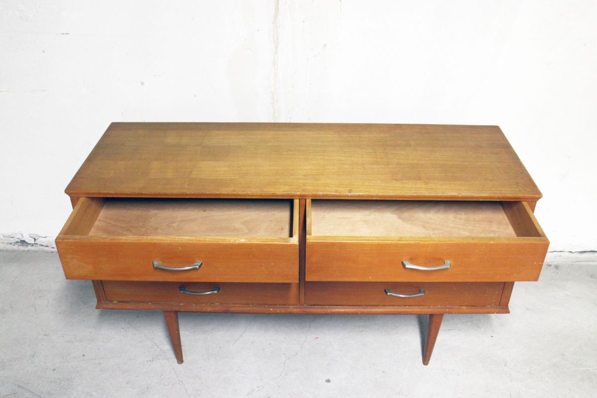 Belle large commode enfilade des années 70 au style scandinave avec ses pieds compas.