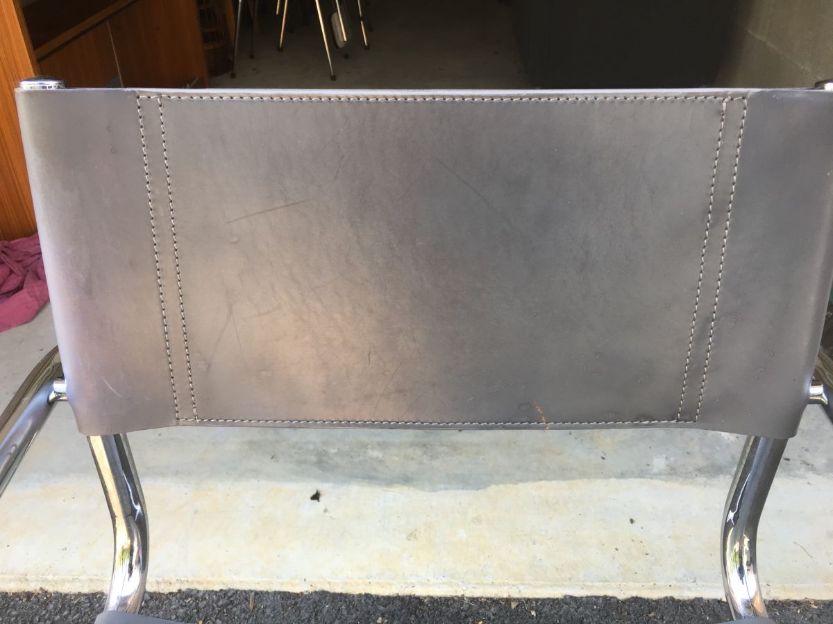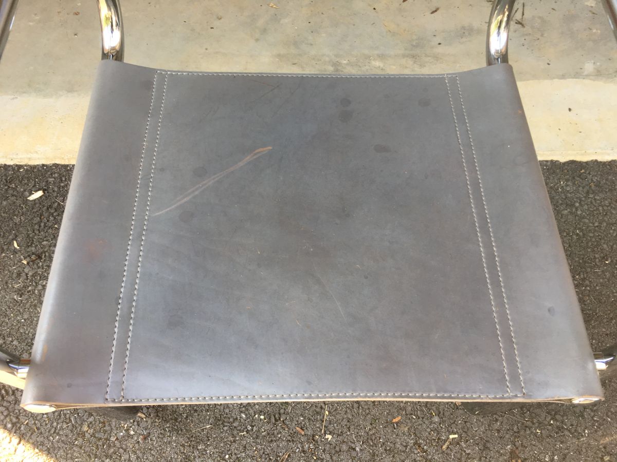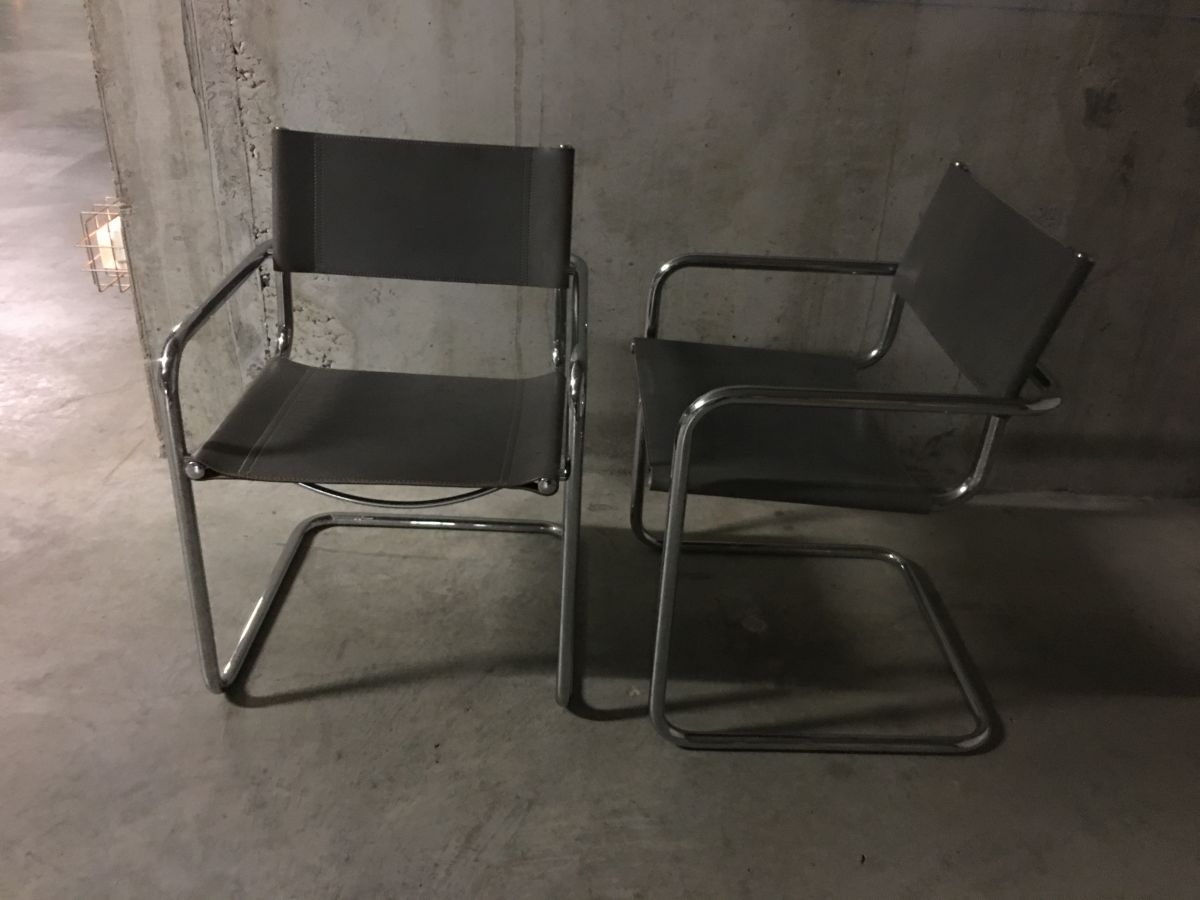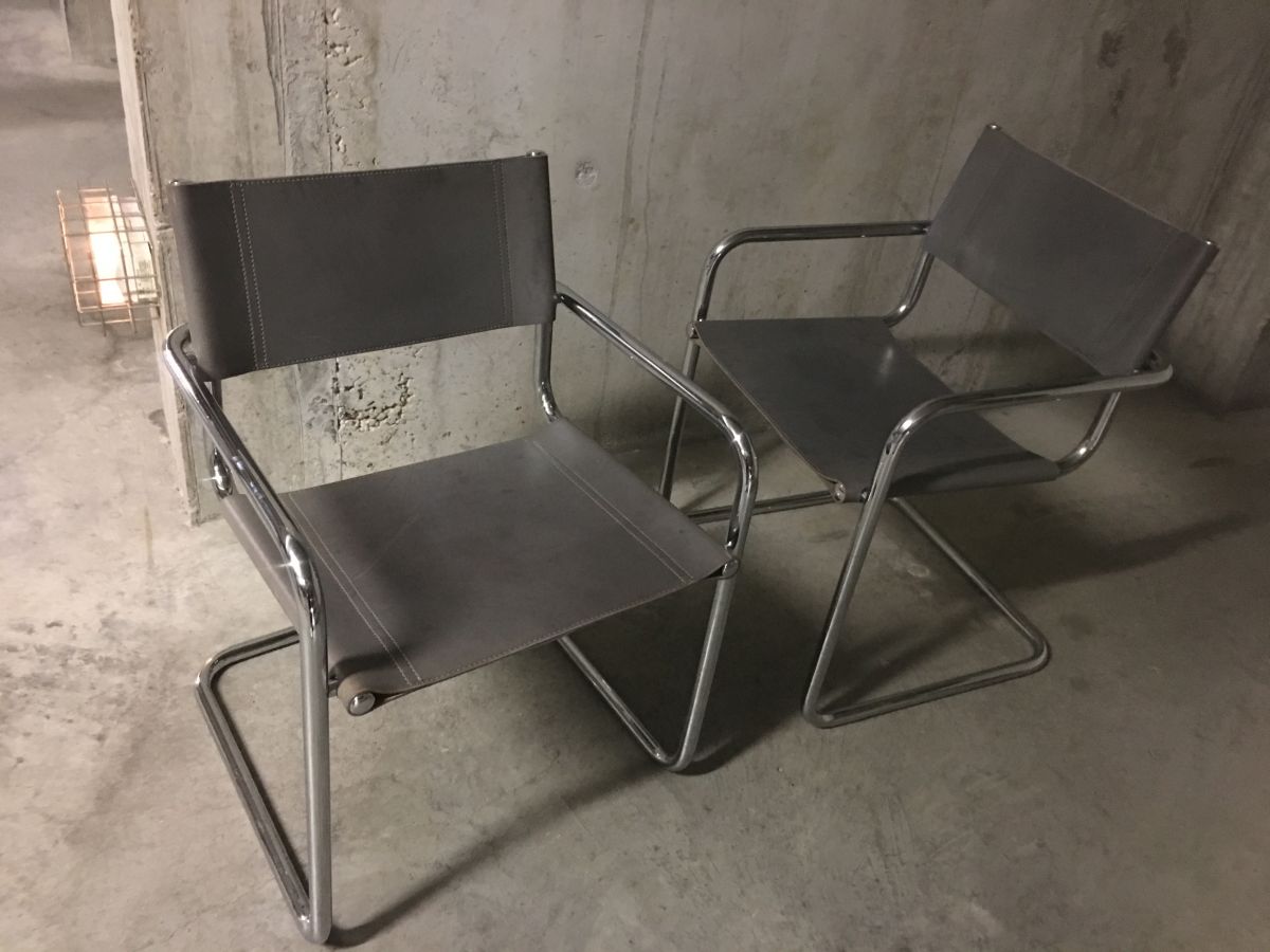 Très belle paire de fauteuils B34 en cuir gris, quelques très légères traces d’usage sur l’assise et le dossier, très bon état du cuir (aucune craquelure) et des chromes, dimensions (cm) : L.55xH.78xP.55, hauteur assise 45cm, assise 49x38cm, bon état.