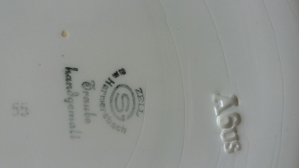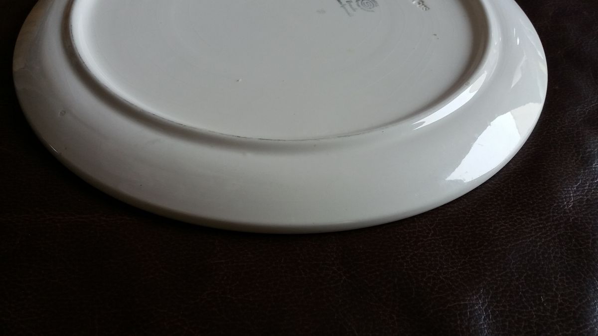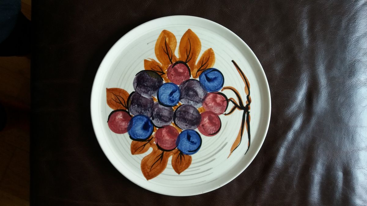 Plat à gâteau ancien avec un motif de grappe de raisin aux belles couleurs, en très bon état pas d'impact.