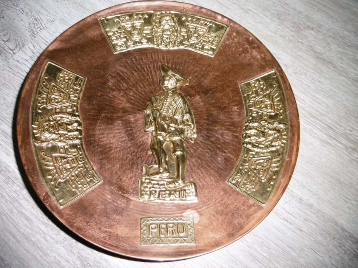 Vintage Assiette Murale en cuivre et laiton Pérou assiette Souvenir.