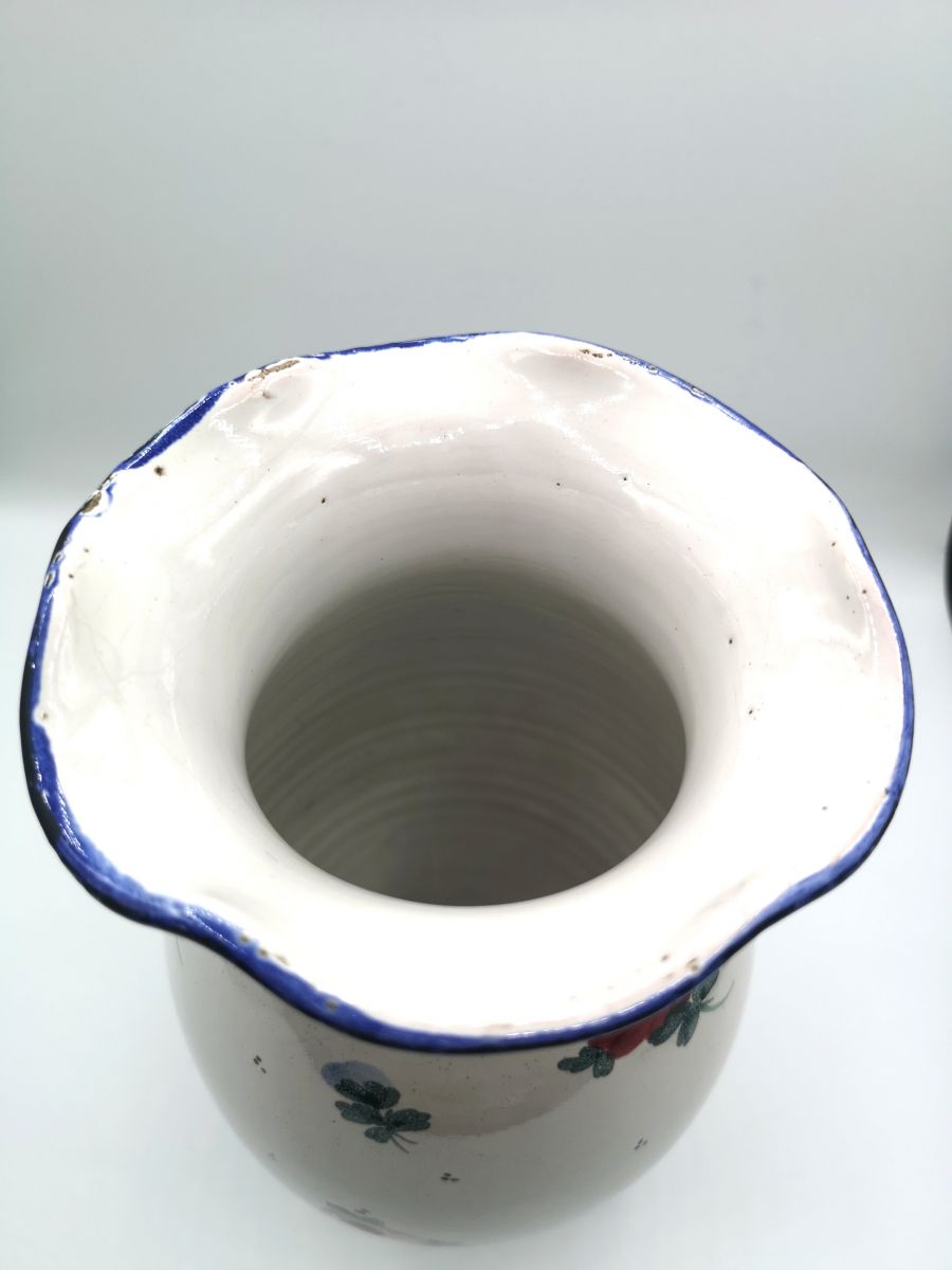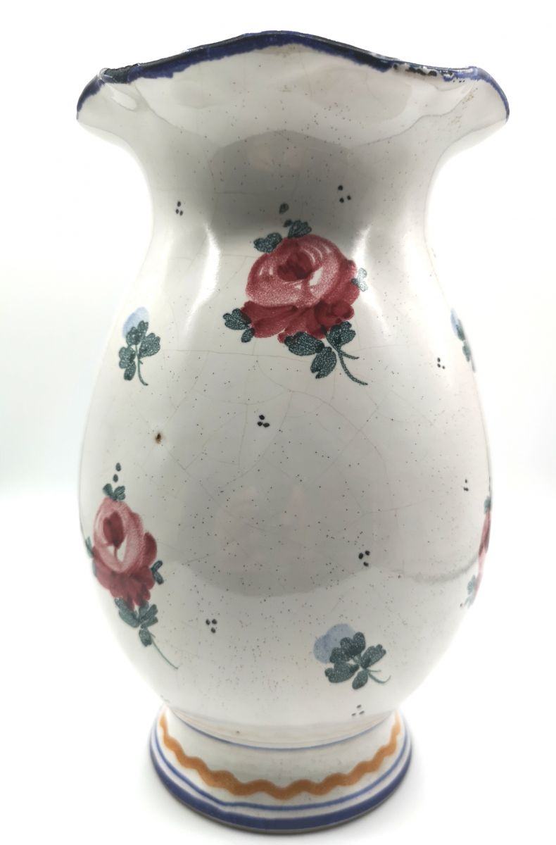 Ce vase a vécu et présente des traces d'usures notamment un éclat (voir photo) mais il possède beaucoup de charme et sera parfait pour recevoir des brassées de fleurs pendant de nombreuses années encore