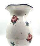 Vase vintage des années 60 en céramique avec des fleurs roses et bleues, esprit campagne chic.