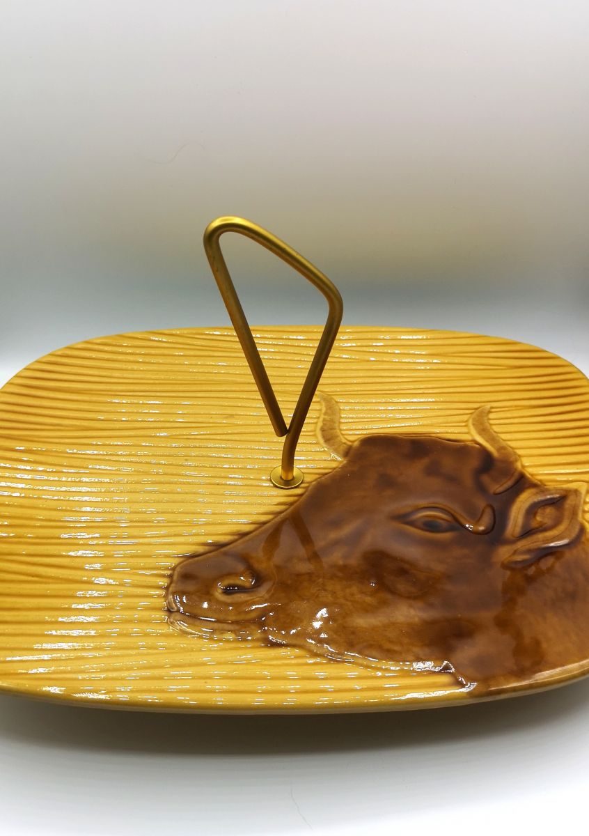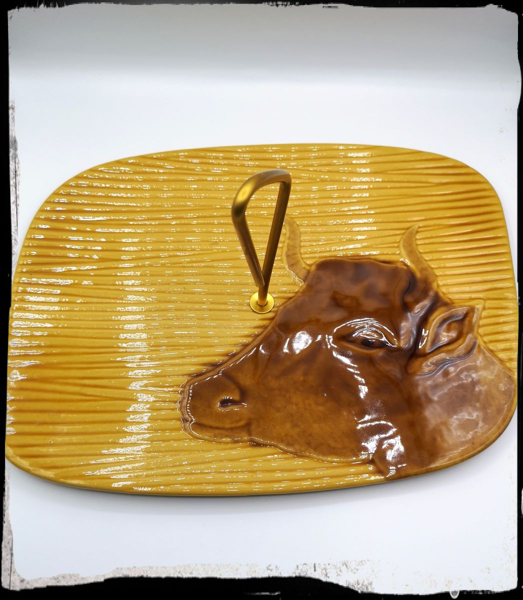 Plateau à fromages vintage en céramique, années 70. En parfait état, très peu utilisé, ce plateau, facilement transportable avec sa poignée, permet de présenter fromages, charcuterie, tapas, apéritif. Son esprit vintage apportera une note très rétro a vos repas.