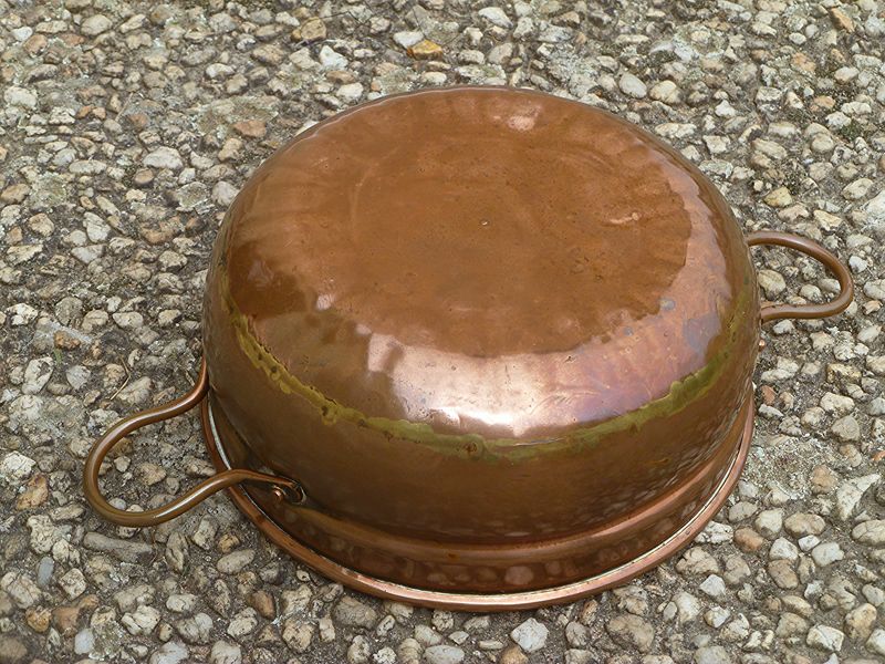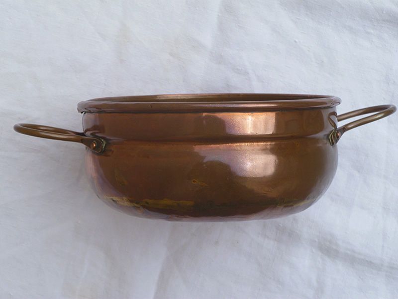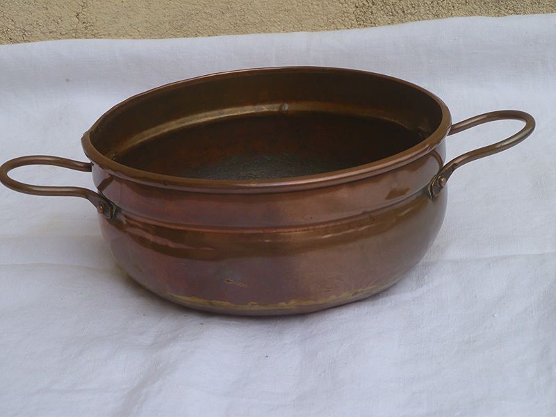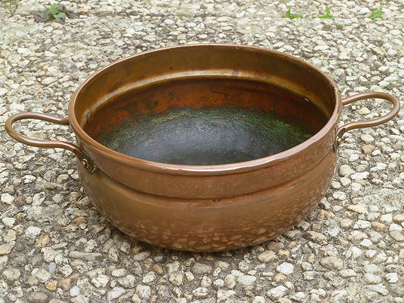cache -pot , jardiniere en cuivre et laiton (anses)