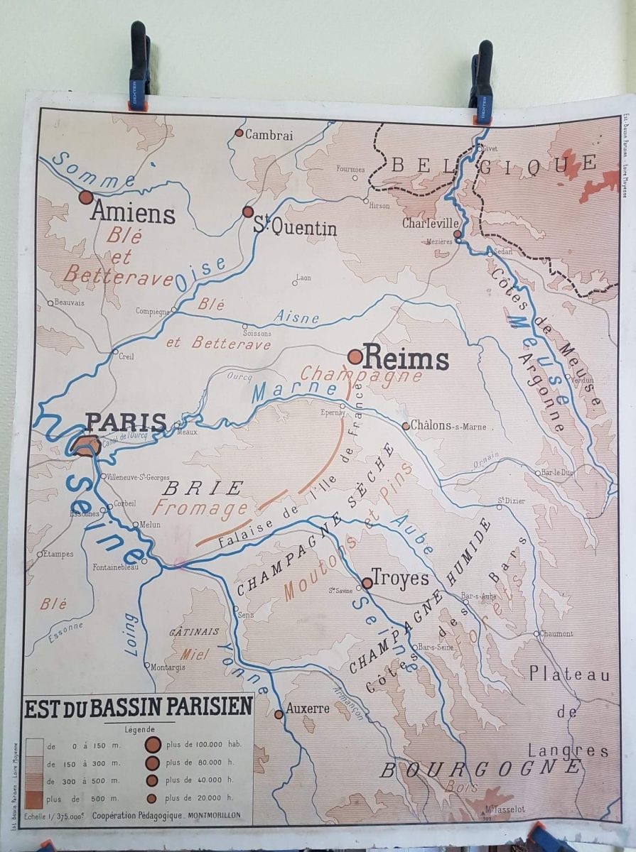 cartes géographiques scolaires Rossignol des années 50 Loire et Bassin parisien double face