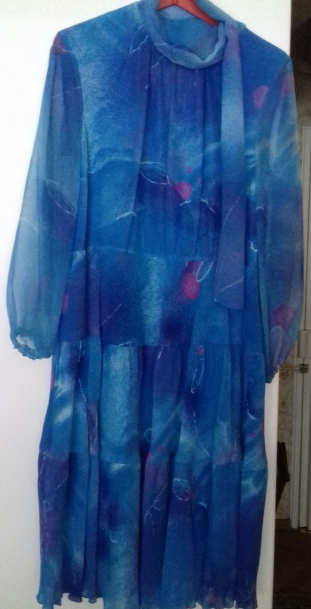 Robe bleue marque verena vintage taille 42 tissu léger année 70 Le bleu est moins vif que sur la photo. .