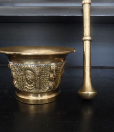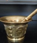 ancien pilon en laiton massif de 850g haut 7.5cm 11.5cm de diametre