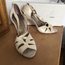 Escarpins en daim noir avec bride croisée dessus du pied et talon. Made in Italy. Taille 38. Talon 6cm