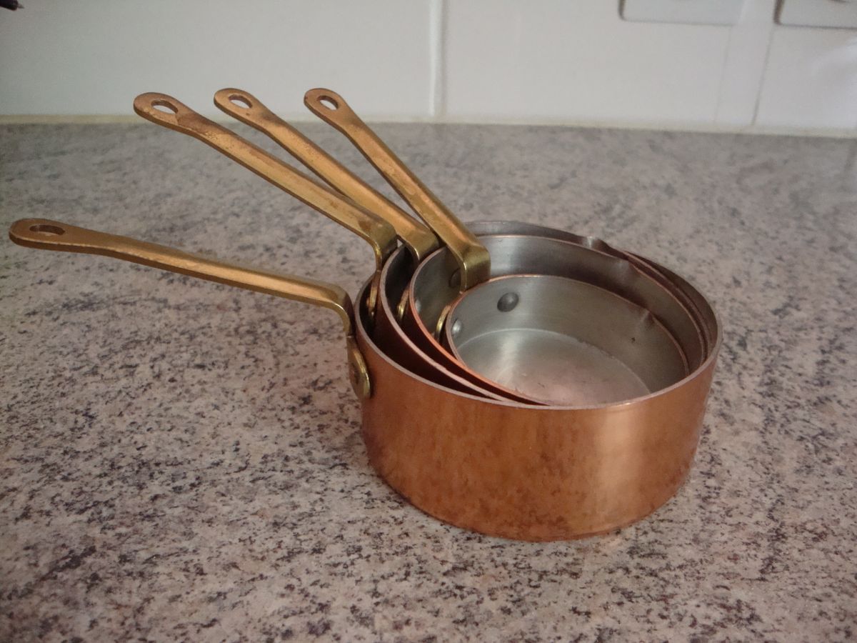 Lot de 4 mini casseroles en cuivre ( dinette ou en décoration)