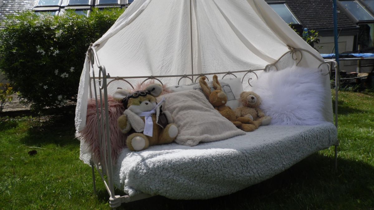 tres joli et ancien lit en fer sur roulettes en bon etat