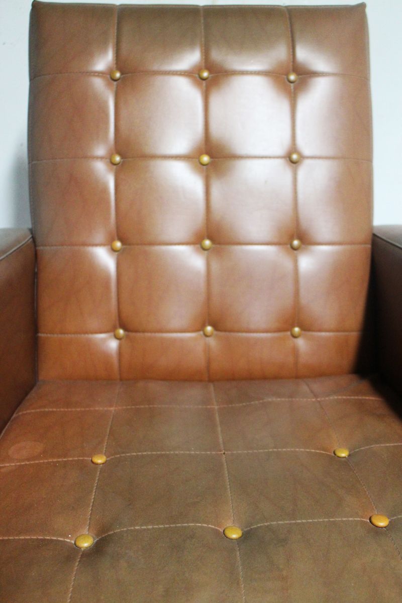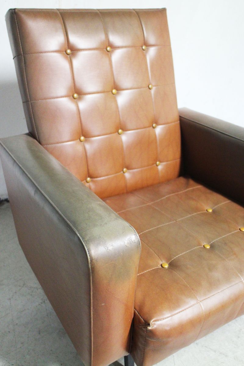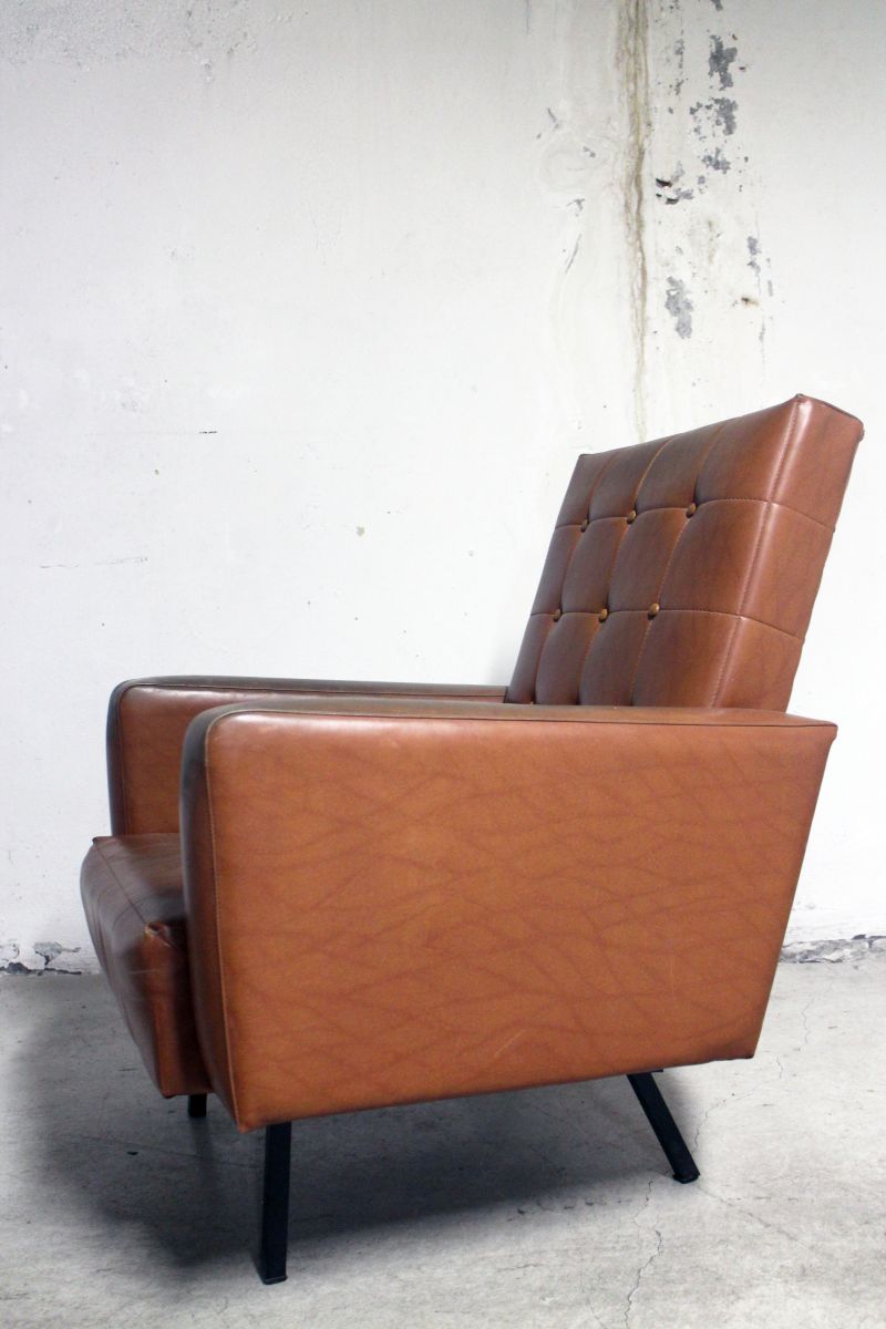 SOLDES -50% - Fauteuil vintage skaï marron années 50