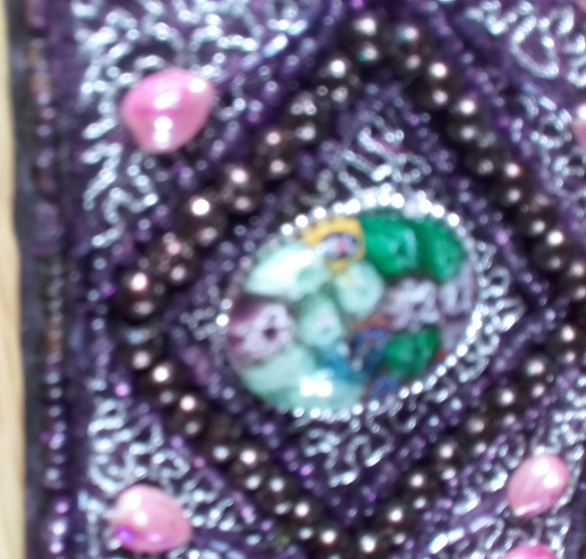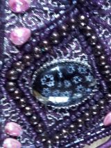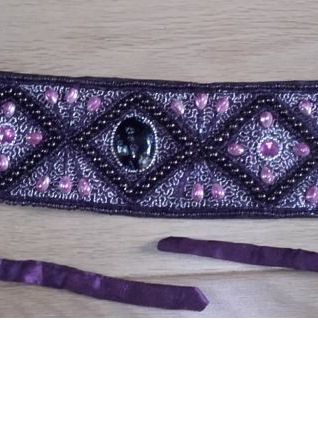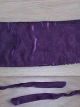 Se lace derrière avec des rubans violets. Verso tissu violet.