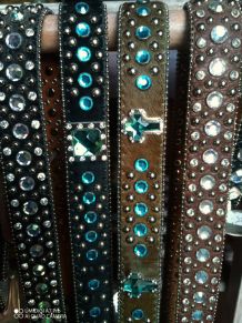 Ceinture colorée égaie vos vêtements sombres. Chaque pierre est différente ce qui donne à l'ensemble un effet très colorée tout en restant sobre.