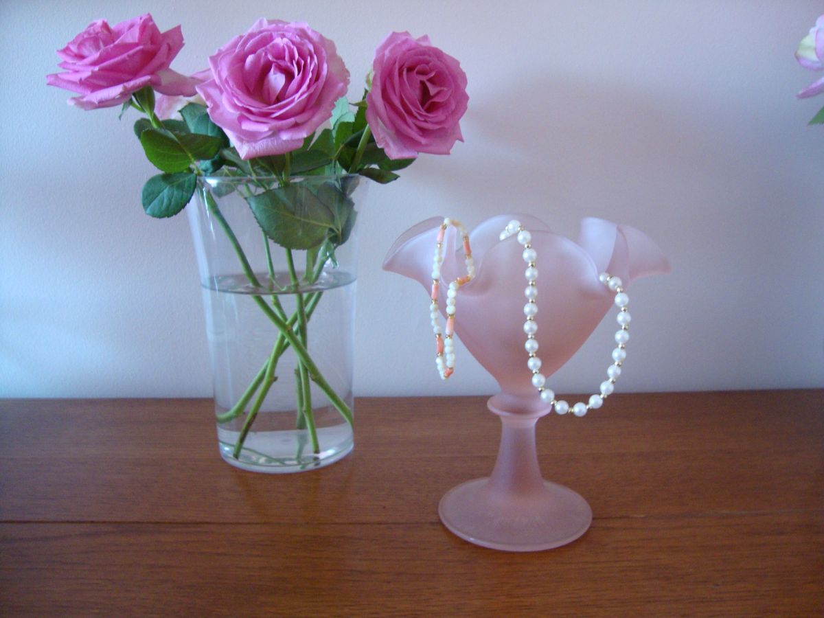 COUPE ROSE PASTEL EN VERRE AVEC PIED