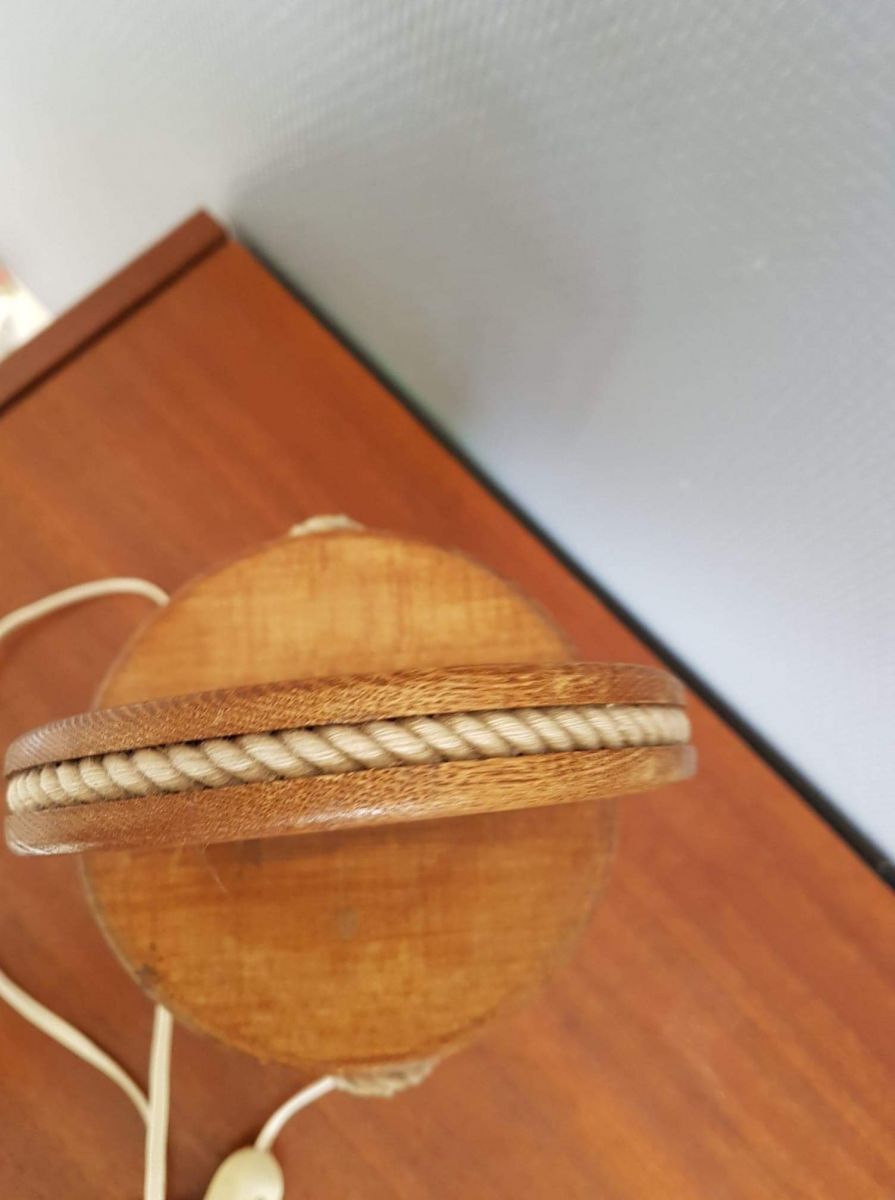 lampe vintage lanterne de pêcheur, globe verre, bois, corde