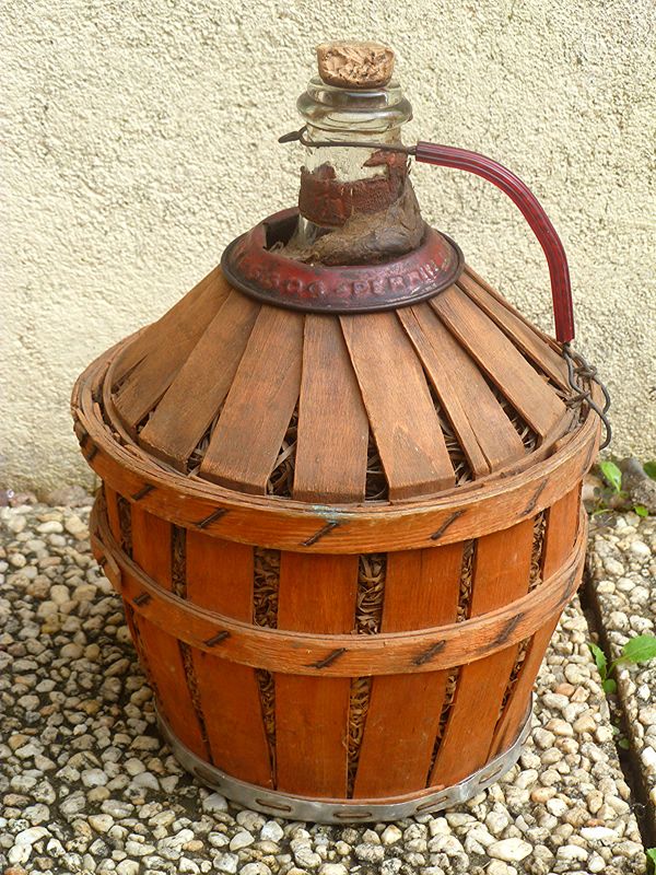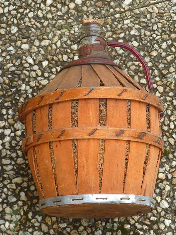 dame jeanne recouverte en bois, vintage