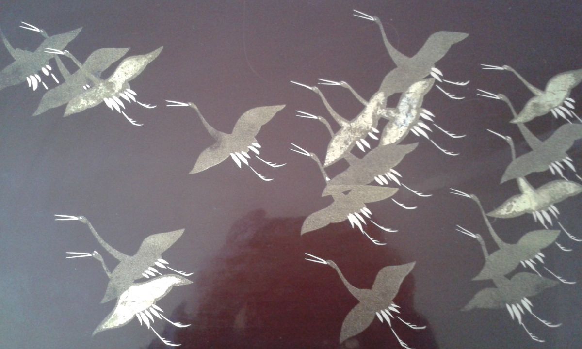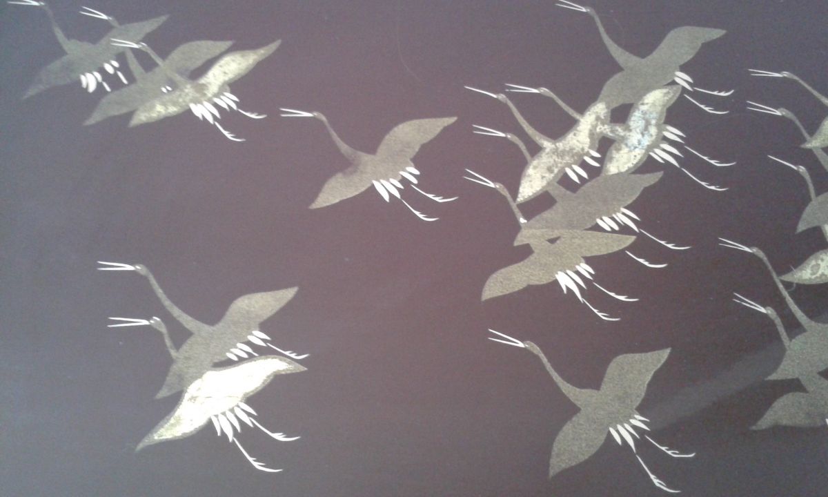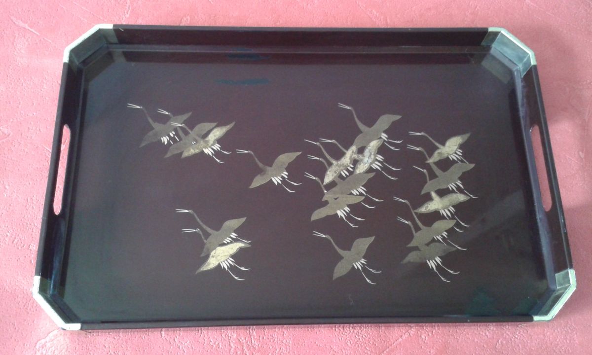 Plateau noir avec motifs dorés fabriqué au Japon.